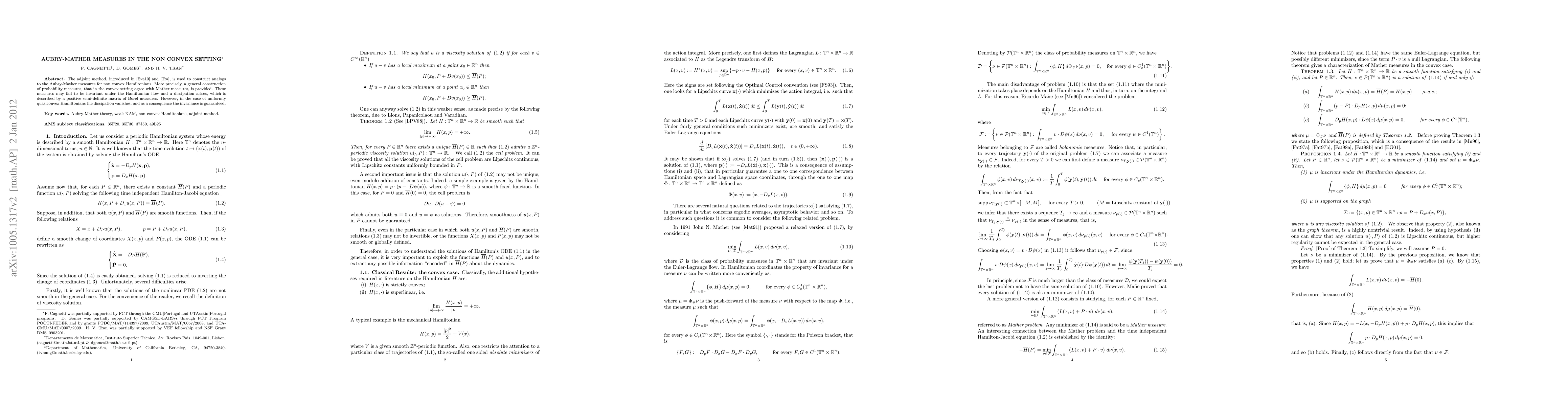 A new method constructs probability measures analogous to Aubry-Mather measures for non-convex Hamiltonians, showing dissipation in some cases but guaranteeing invariance when the Hamiltonian is uniformly quasiconvex.