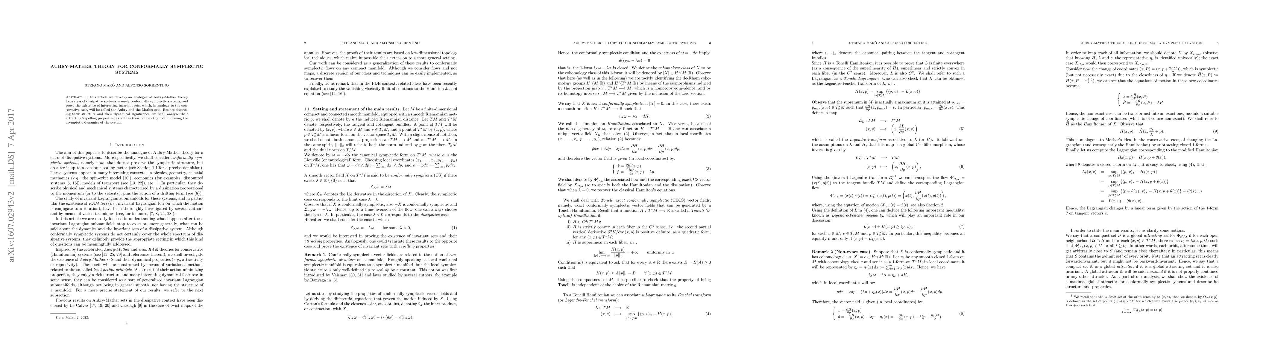 This paper develops an analogue of Aubry-Mather theory for conformally symplectic systems, proving the existence of Aubry and Mather sets that play a crucial role in determining the system's asymptotic dynamics and exhibit attracting/repelling properties.