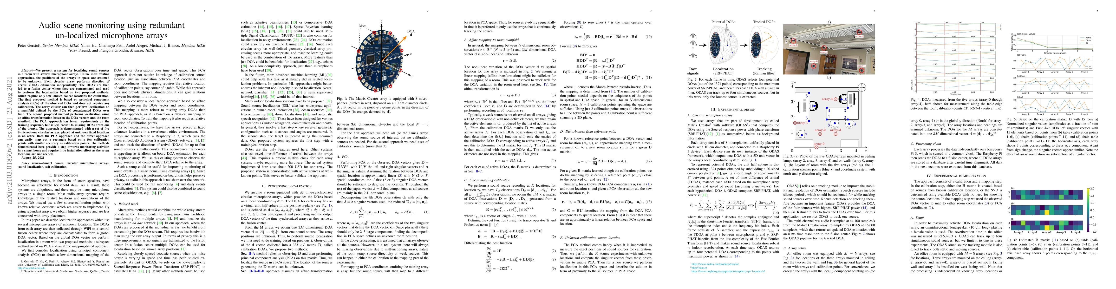 Researchers developed a system to localize sound sources in a room using redundant ad-hoc microphone arrays, with two proposed methods that require minimal labeled source locations for training.