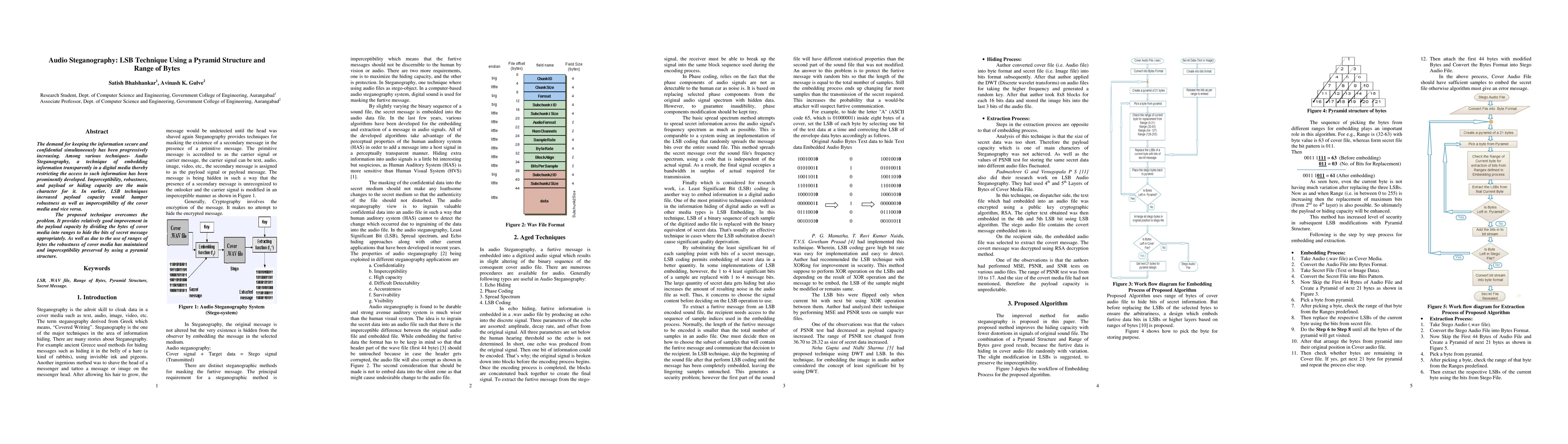 The demand for keeping the information secure and confidential simultaneously has been progressively increasing. Among various techniques- Audio Steganography, a technique of embedding information transparently in a digital media thereby restricting the access to such information has been prominently developed. Imperceptibility, robustness, and payload or hiding capacity are the main character for it. In earlier, LSB techniques increased payload capacity would hamper robustness as well as imperceptibility of the cover media and vice versa. The proposed technique overcomes the problem. It provides relatively good improvement in the payload capacity by dividing the bytes of cover media into ranges to hide the bits of secret message appropriately. As well as due to the use of ranges of bytes the robustness of cover media has maintained and imperceptibility preserved by using a pyramid structure.