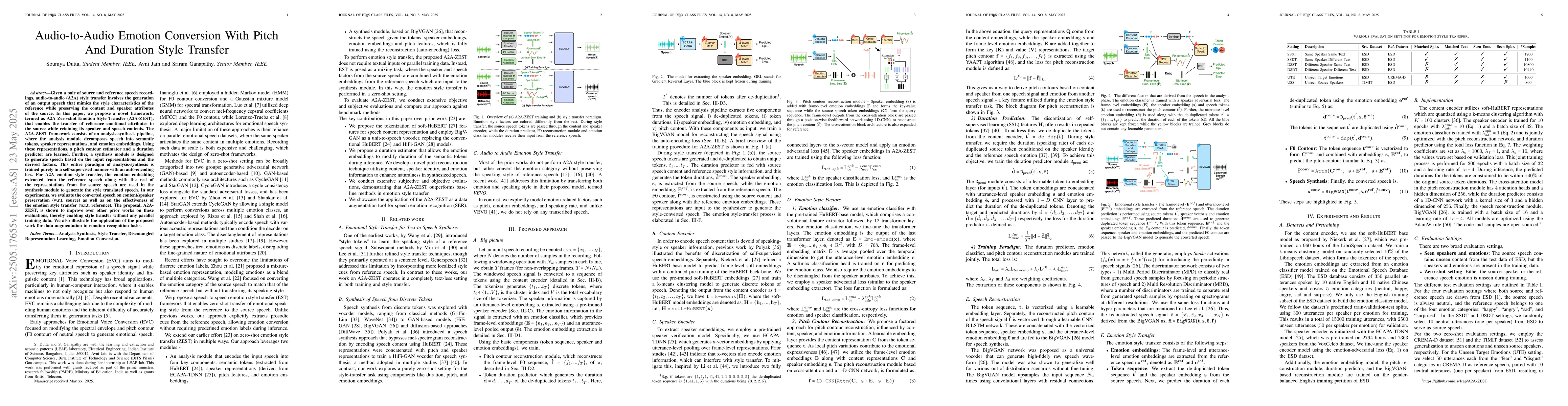 Researchers developed A2A-ZEST, a self-supervised framework that converts speech emotions without parallel training data, improving over prior works in style transfer and emotion recognition tasks.