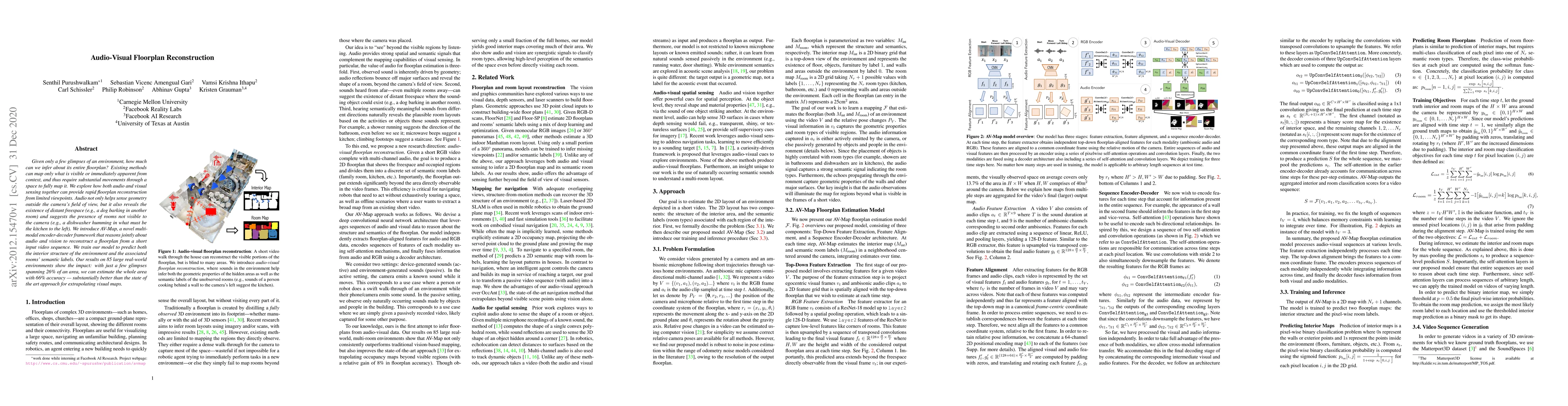 This paper proposes AV-Map, a novel framework that uses both audio and visual data to reconstruct floorplans from limited viewpoints. The method achieves 66% accuracy in estimating entire floorplans from only 26% of the area, outperforming existing visual-only mapping techniques.