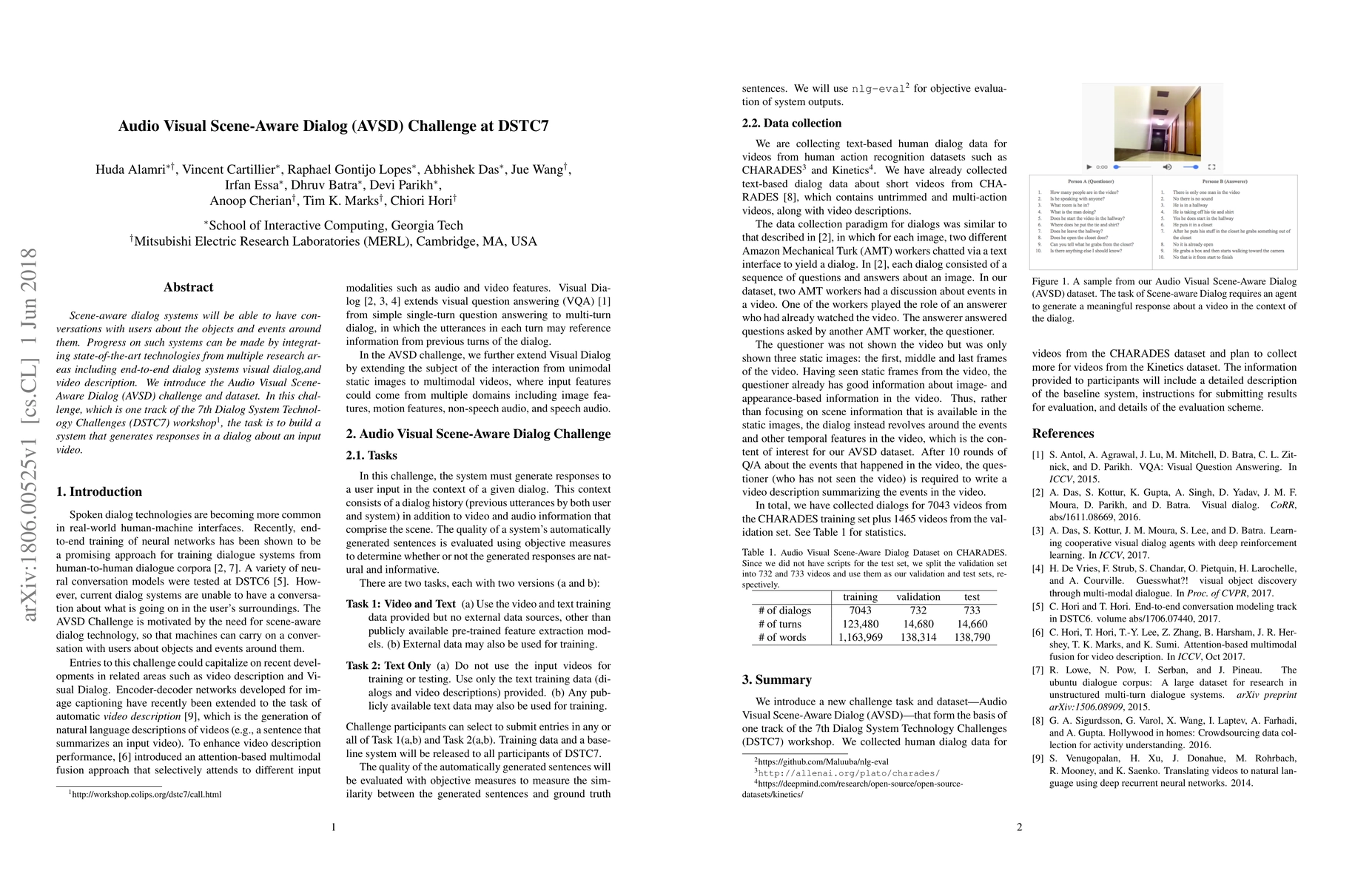 The Audio Visual Scene-Aware Dialog (AVSD) challenge at DSTC7 aims to develop systems that can converse about objects and events in a video, integrating advancements from end-to-end dialog systems, visual dialog, and video description. The challenge provides a dataset for building such scene-aware dialog systems.