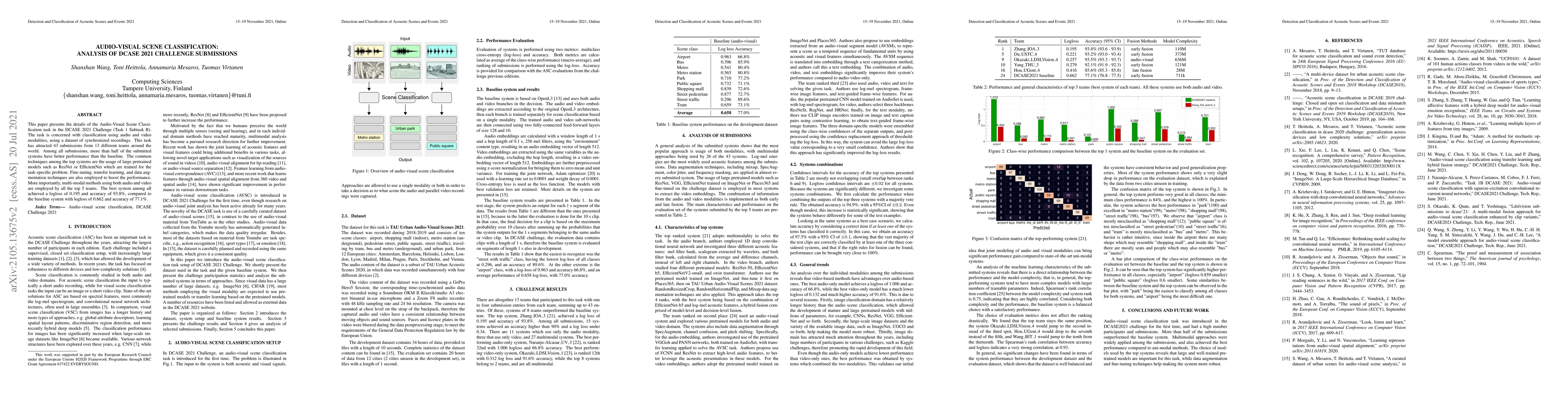 Researchers analyzed 43 submissions to the DCASE 2021 Challenge's Audio-Visual Scene Classification task, finding that multi-modal methods using both audio and video were key to top-performing systems, with one achieving an accuracy of 93.8%.