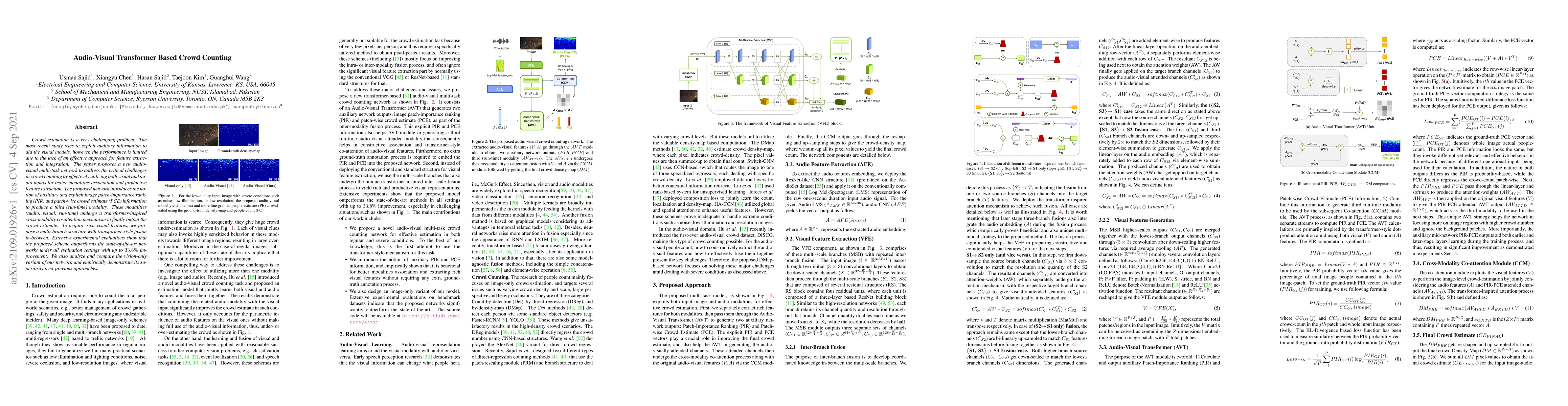 This paper proposes a new audiovisual crowd counting model that combines visual and audio inputs using a transformer-inspired co-attention mechanism to produce accurate crowd estimates. It outperforms state-of-the-art networks with up to 33.8% improvement.