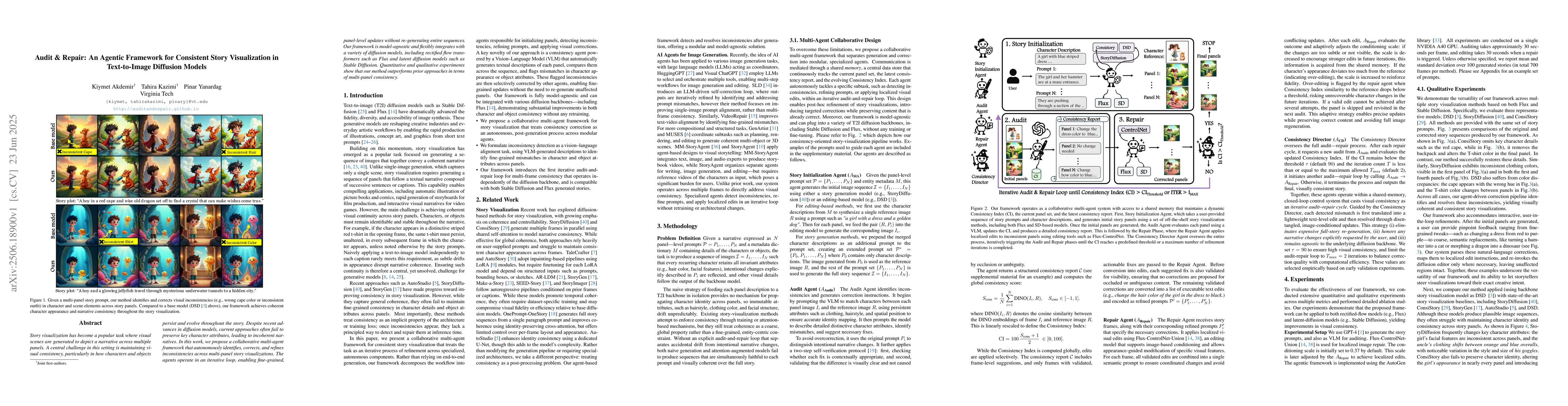 This research introduces an autonomous multi-agent framework, 'Audit & Repair', to maintain visual consistency in multi-panel story visualizations generated by diffusion models. The framework, model-agnostic and adaptable to various diffusion models, iteratively identifies and corrects inconsistencies at the panel level, significantly improving multi-panel consistency compared to prior methods.