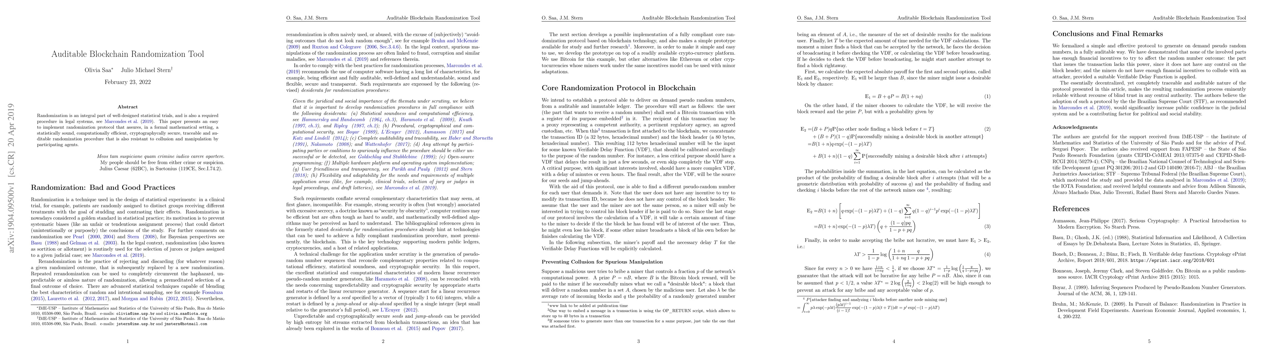 Randomization is an integral part of well-designed statistical trials, and is also a required procedure in legal systems, see Marcondes et al. (2019) This paper presents an easy to implement randomization protocol that assures, in a formal mathematical setting, a statistically sound, computationally efficient, cryptographically secure, traceable and auditable randomization procedure that is also resistant to collusion and manipulation by participating agents.