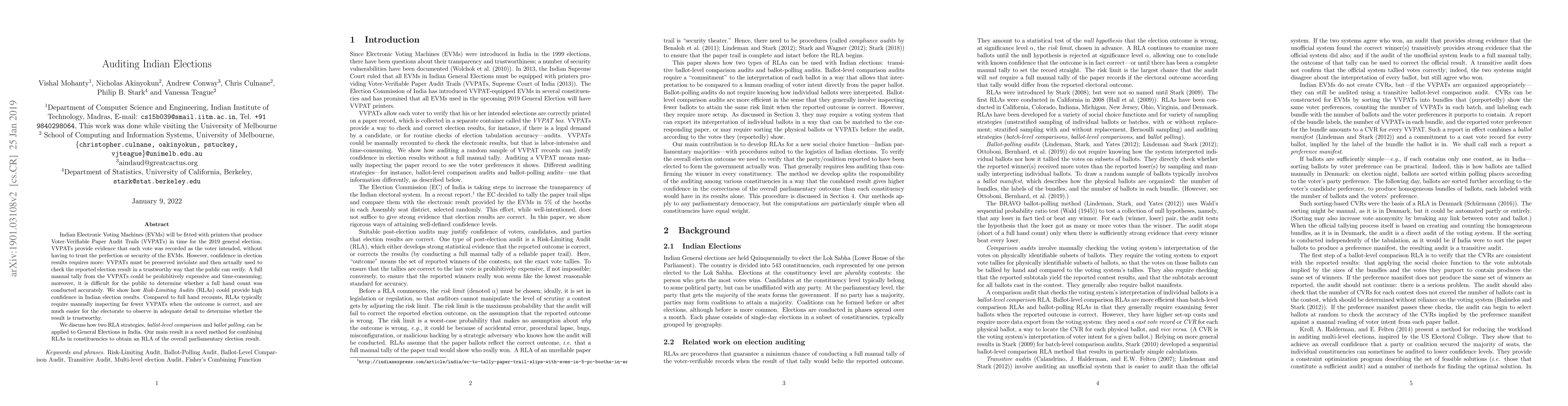 Peter J. Stuckey, Philip B. Stark, Damjan Vukcevic et al.