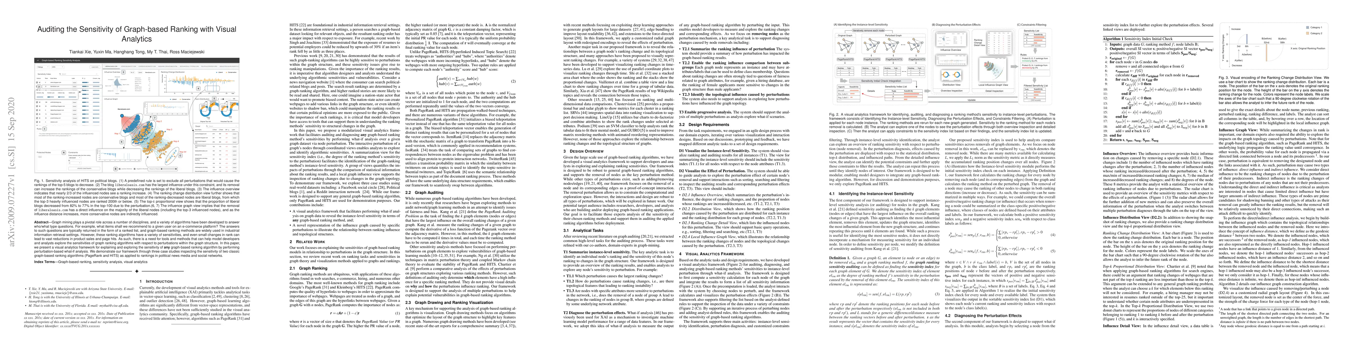 This paper introduces a visual analytics framework to explore the sensitivity of graph-based ranking algorithms through perturbation-based analysis. It demonstrates the framework's effectiveness by examining the sensitivity of PageRank and HITS algorithms in political news media and social networks.