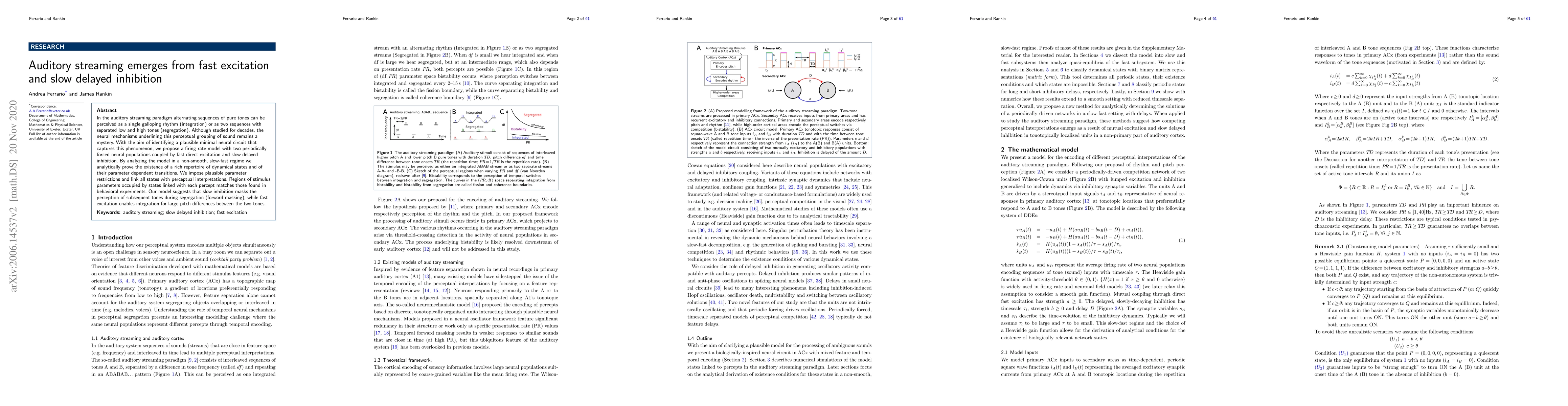 Researchers propose a neural circuit model explaining how auditory streaming emerges from fast excitation and slow inhibition, shedding light on the perception of sound rhythms.
