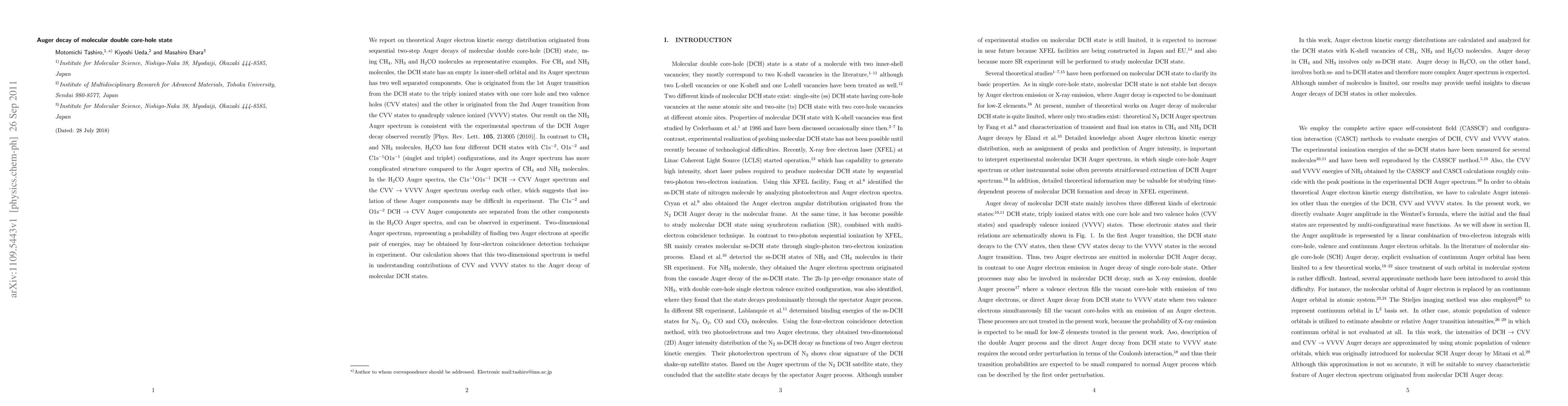 This paper presents theoretical analysis of Auger decay processes in molecular double core-hole (DCH) states for CH4, NH3, and H2CO. The study reveals distinct Auger spectra for CH4 and NH3 due to sequential two-step decays, while H2CO's spectrum is more complex with overlapping components, highlighting the potential for experimental observation using four-electron coincidence detection.