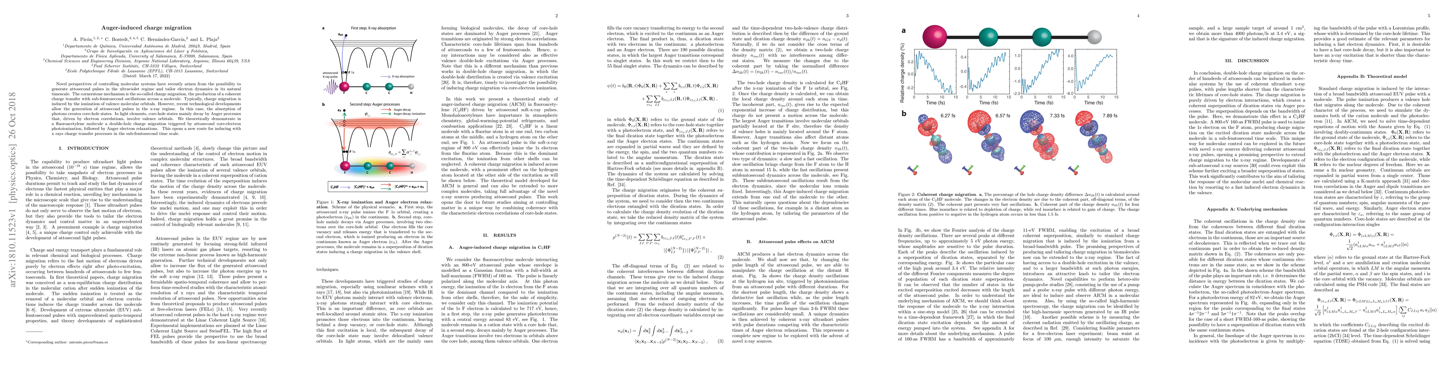 This paper explores the novel mechanism of Auger-induced charge migration in fluoroacetylene, demonstrating how attosecond x-ray pulses can trigger subfemtosecond charge transfer processes through core-electron photoionization and subsequent Auger relaxations. This discovery provides a new pathway for controlling molecular dynamics using x-ray technology.
