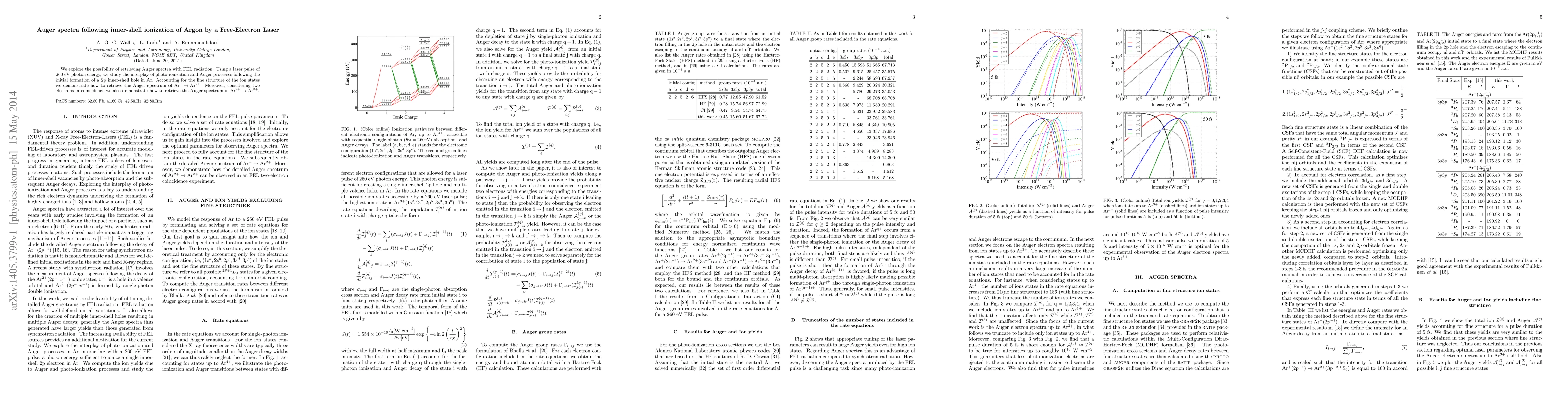 We explore the possibility of retrieving Auger spectra with FEL radiation. Using a laser pulse of 260 eV photon energy, we study the interplay of photo-ionization and Auger processes following the initial formation of a 2p inner-shell hole in Ar. Accounting for the fine structure of the ion states we demonstrate how to retrieve the Auger spectrum of $\mathrm{Ar^{+}\rightarrow Ar^{2+}}$. Moreover, considering two electrons in coincidence we also demonstrate how to retrieve the Auger spectrum of $\mathrm{Ar^{2+}\rightarrow Ar^{3+}}$.