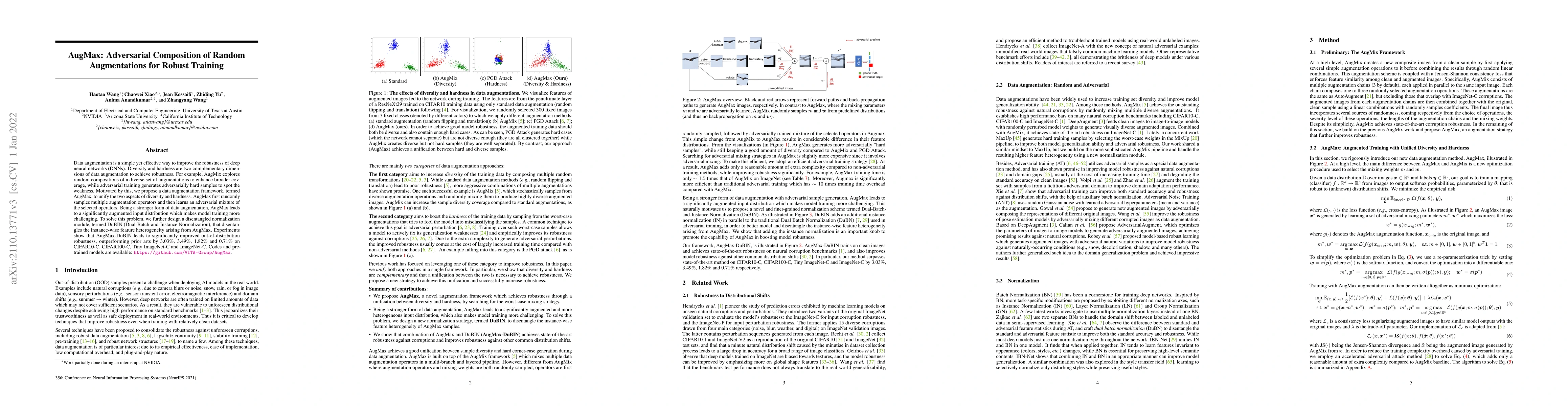 Researchers propose AugMax, a data augmentation framework that combines diversity and hardness to improve deep neural network robustness, achieving up to 3.49% improvement over prior methods on certain datasets.