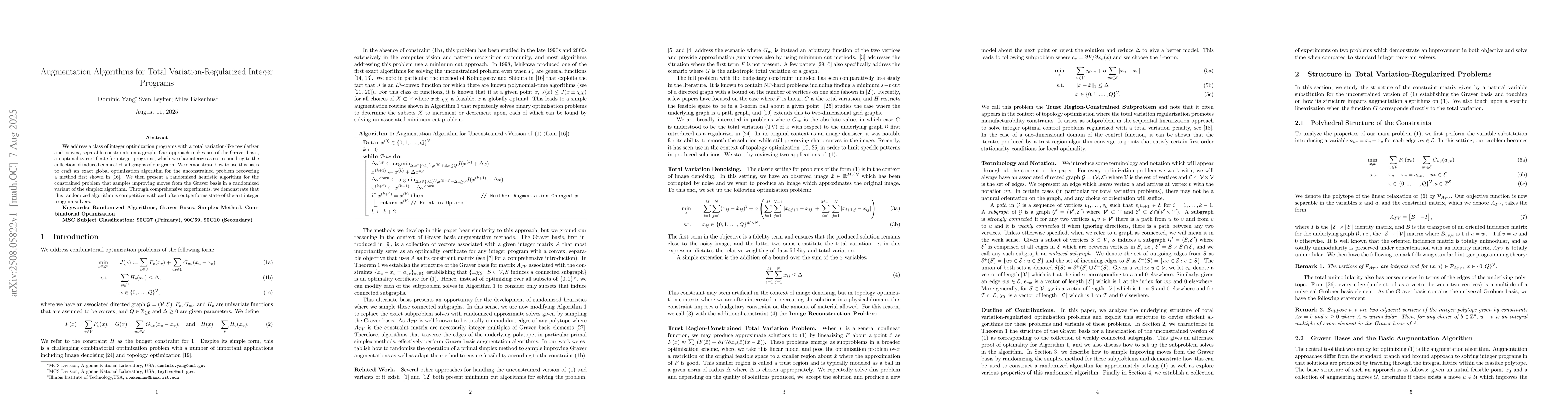 We address a class of integer optimization programs with a total variation-like regularizer and convex, separable constraints on a graph. Our approach makes use of the Graver basis, an optimality certificate for integer programs, which we characterize as corresponding to the collection of induced connected subgraphs of our graph. We demonstrate how to use this basis to craft an exact global optimization algorithm for the unconstrained problem recovering a method first shown in [16]. We then present a randomized heuristic algorithm for the constrained problem that samples improving moves from the Graver basis in a randomized variant of the simplex algorithm. Through comprehensive experiments, we demonstrate that this randomized algorithm is competitive with and often outperforms state-of-the-art integer program solvers.