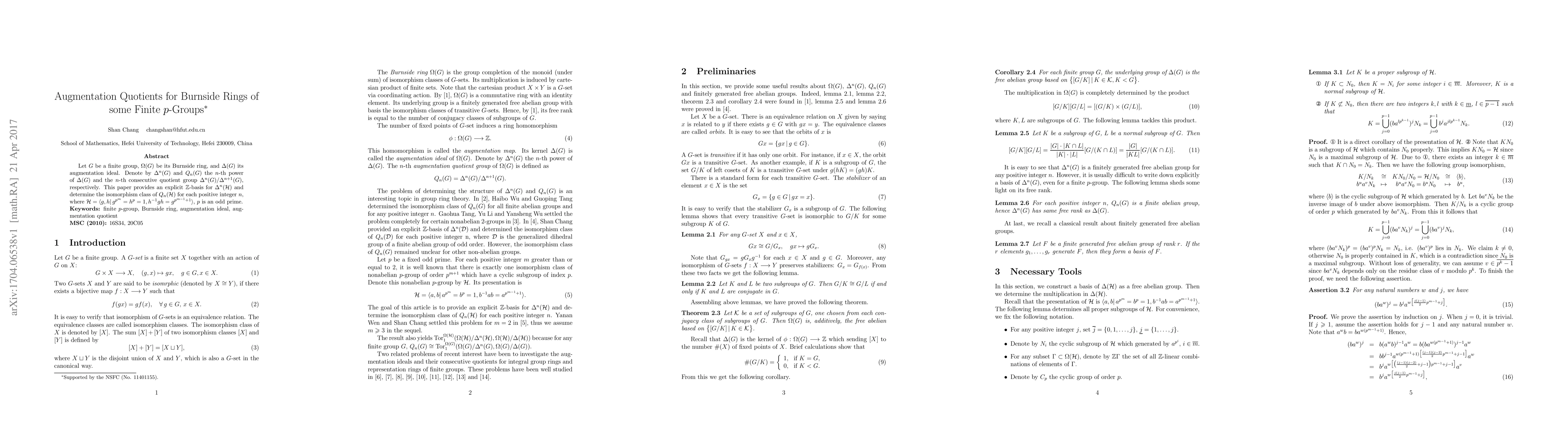 This paper provides an explicit Z-basis for the n-th power of the augmentation ideal in a specific finite p-group and determines its isomorphism class for each positive integer n.
