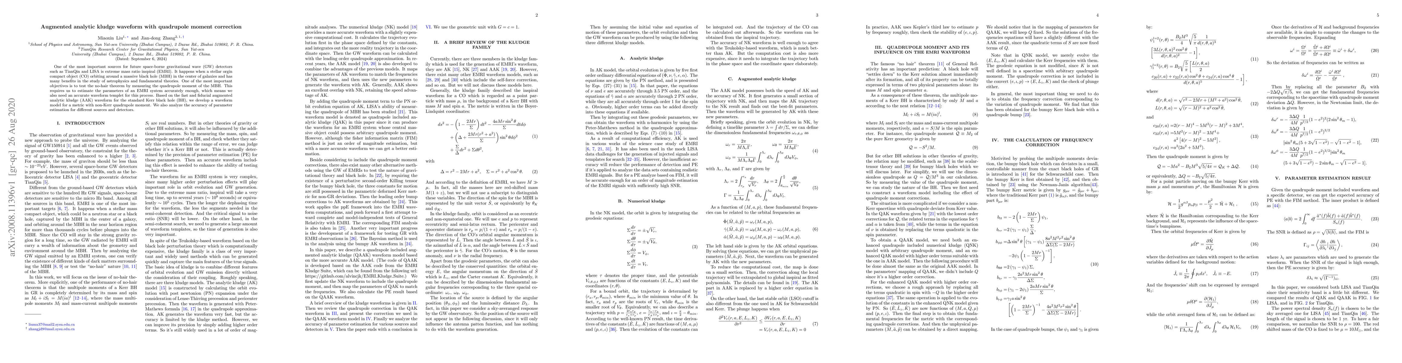 One of the most important sources for future space-borne gravitational wave detectors such as TianQin and LISA is EMRI. It happens when a stellar orgin compact object orbiting around a massive black hole(MBH) in the center of galaxies and has many benefits in the study of astrophysics and fundamental theories. One of the most important objectives is to test the no-hair theorem by measuring the quadrupole moment of the MBH. This requires us to estimate the parameters of an EMRI system accurately enough, which means we also need an accurate waveform templet for this process. Based on the fast and fiducial augmented analytic kludge (AAK) waveform for the standard Kerr black hole, we develop a waveform model for a metric with non-Kerr quadrupole moment. We also analyze the accuracy of parameter estimation for different sources and detectors.