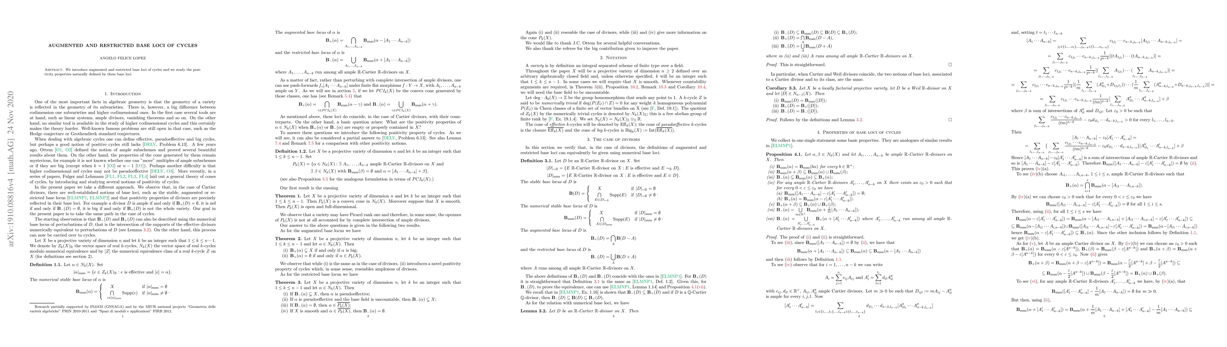 Summary: This paper introduces augmented and restricted base loci for cycles, investigating their positivity properties and their implications for the study of algebraic cycles.