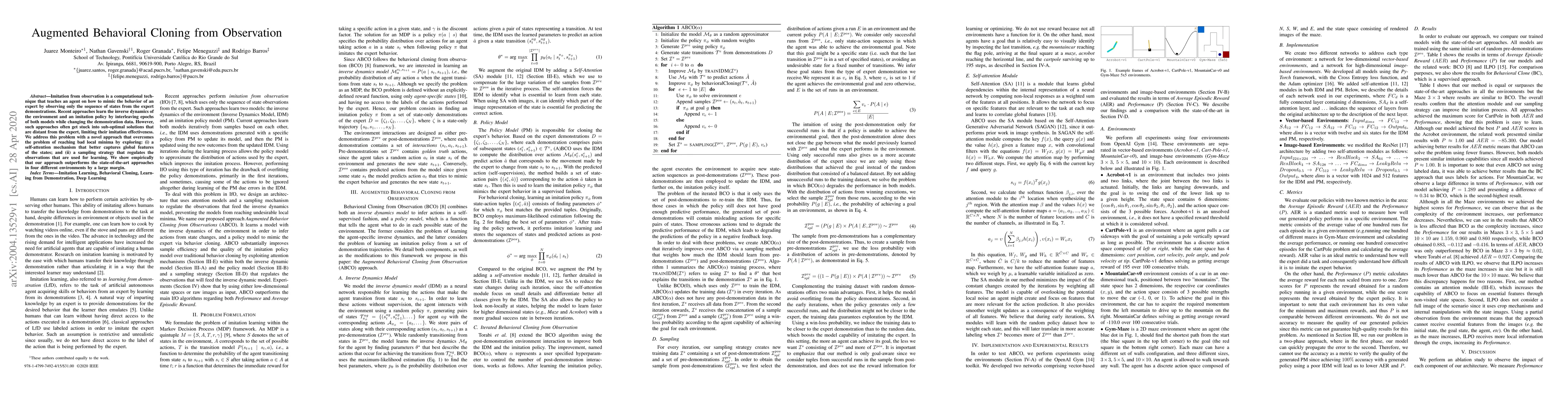 Imitation from observation is a computational technique that teaches an agent on how to mimic the behavior of an expert by observing only the sequence of states from the expert demonstrations. Recent approaches learn the inverse dynamics of the environment and an imitation policy by interleaving epochs of both models while changing the demonstration data. However, such approaches often get stuck into sub-optimal solutions that are distant from the expert, limiting their imitation effectiveness. We address this problem with a novel approach that overcomes the problem of reaching bad local minima by exploring: (I) a self-attention mechanism that better captures global features of the states; and (ii) a sampling strategy that regulates the observations that are used for learning. We show empirically that our approach outperforms the state-of-the-art approaches in four different environments by a large margin.