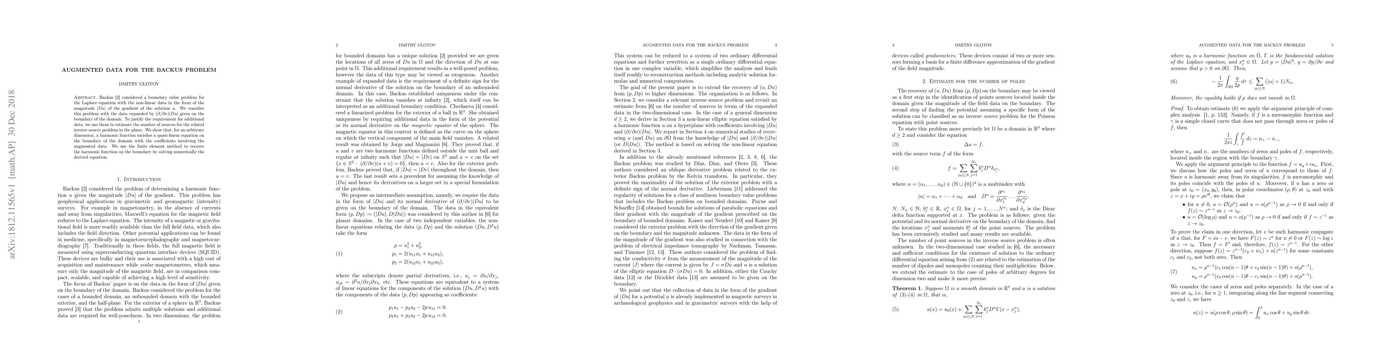 Researchers expand data for solving a complex mathematical problem called the Backus problem, which involves estimating a harmonic function on its boundary, and use this augmented data to develop an equation that can be solved numerically with the finite element method.