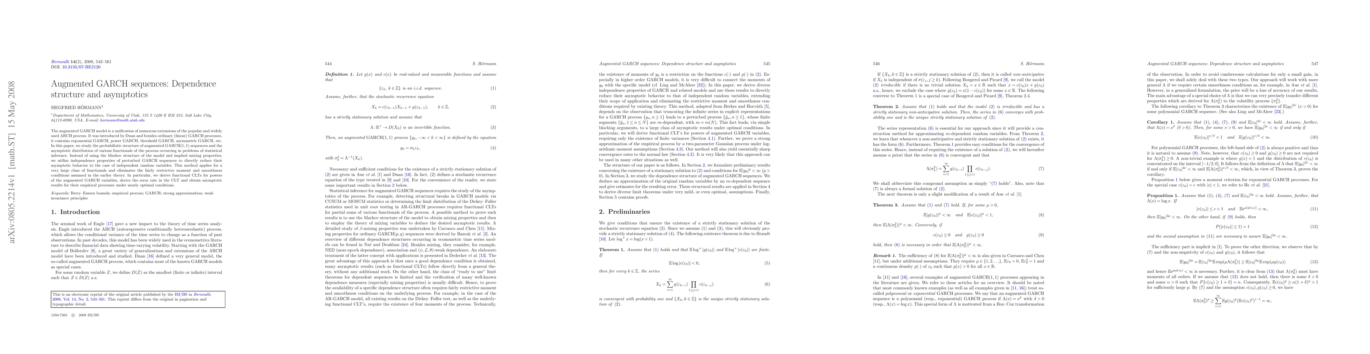 This paper develops a new method for analyzing augmented GARCH models by using independence properties of perturbed sequences to derive functional central limit theorems and asymptotic results for empirical processes.