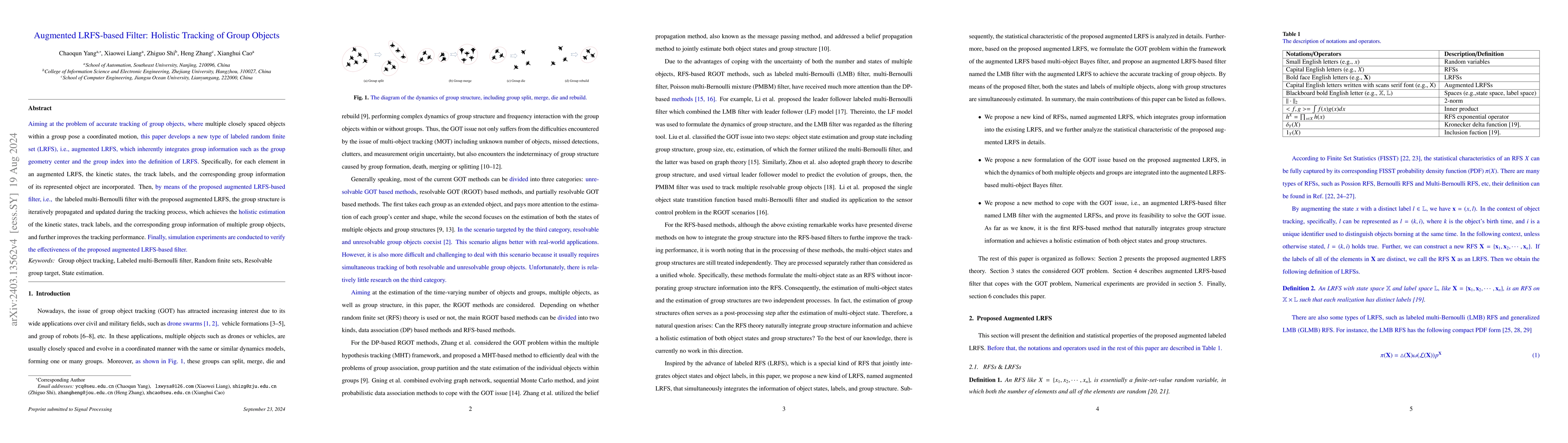 This paper addresses the problem of group target tracking (GTT), wherein multiple closely spaced targets within a group pose a coordinated motion. To improve the tracking performance, the labeled random finite sets (LRFSs) theory is adopted, and this paper develops a new kind of LRFSs, i.e., augmented LRFSs, which introduces group information into the definition of LRFSs. Specifically, for each element in an LRFS, the kinetic states, track label, and the corresponding group information of its represented target are incorporated. Furthermore, by means of the labeled multi-Bernoulli (LMB) filter with the proposed augmented LRFSs, the group structure is iteratively propagated and updated during the tracking process, which achieves the simultaneously estimation of the kinetic states, track label, and the corresponding group information of multiple group targets, and further improves the GTT tracking performance. Finally, simulation experiments are provided, which well demonstrates the effectiveness of the labeled multi-Bernoulli filter with the proposed augmented LRFSs for GTT tracking.