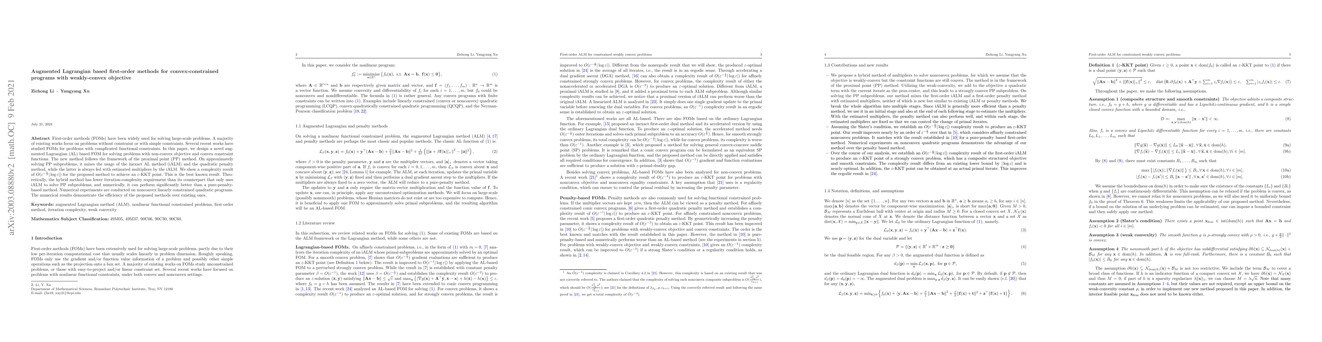 This paper introduces an augmented Lagrangian-based first-order method for solving convex-constrained programs with weakly-convex objectives. The proposed method combines inexact augmented Lagrangian and quadratic penalty techniques, achieving an optimal complexity of $O(\varepsilon^{-\frac{5}{2}}|\log\varepsilon|)$ for finding an $\varepsilon$-KKT point, outperforming existing methods both theoretically and numerically.