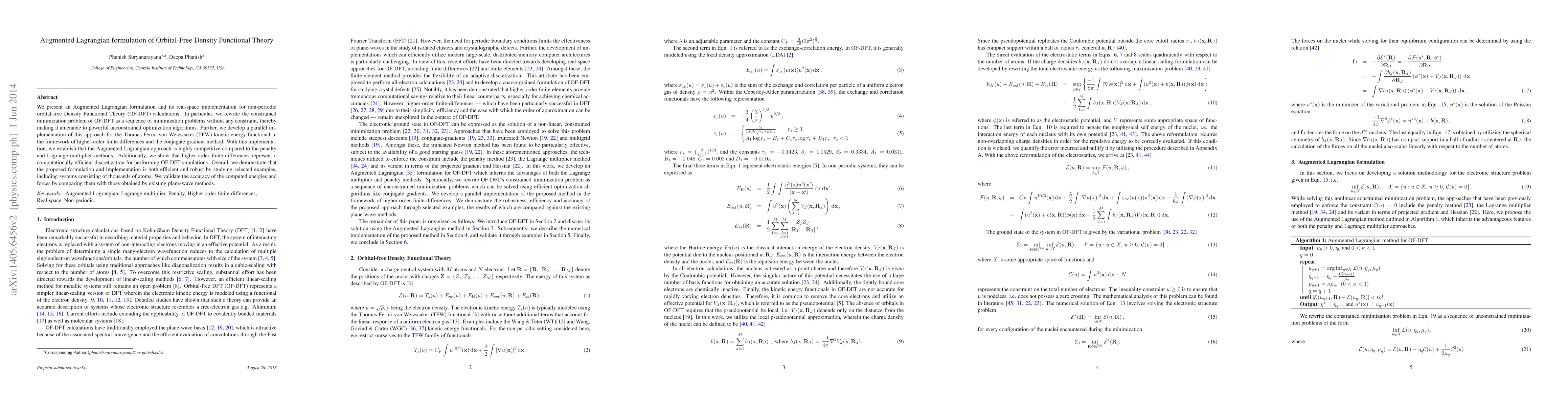 This paper introduces an Augmented Lagrangian formulation for orbital-free Density Functional Theory (OF-DFT) calculations, transforming the constrained minimization problem into a series of unconstrained problems. The authors develop a parallel implementation for the Thomas-Fermi-von Weizscaker kinetic energy functional, demonstrating its competitiveness and efficiency compared to existing methods.