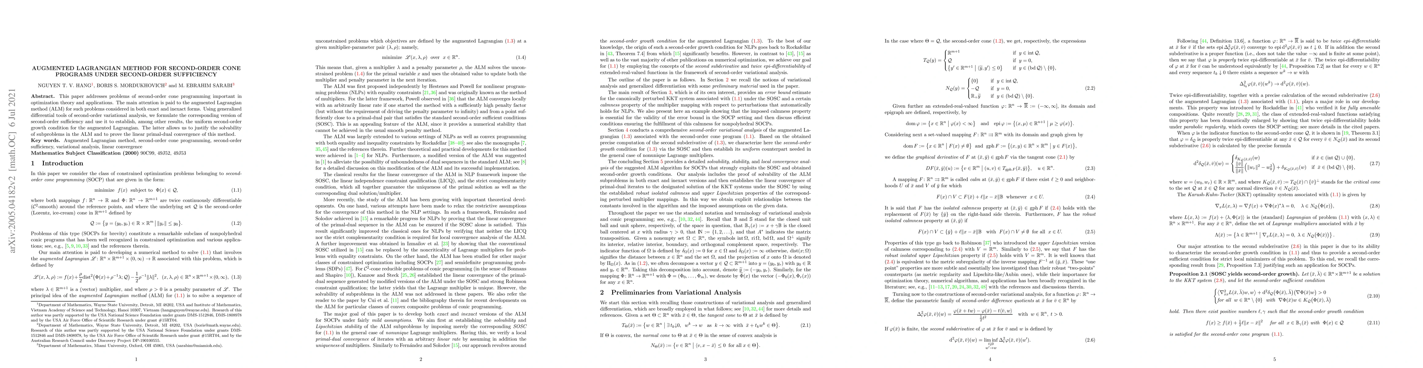 This paper develops the augmented Lagrangian method (ALM) for second-order cone programs, establishing second-order sufficiency conditions and proving linear convergence. It leverages second-order variational analysis to ensure the solvability of subproblems and justify the method's effectiveness.