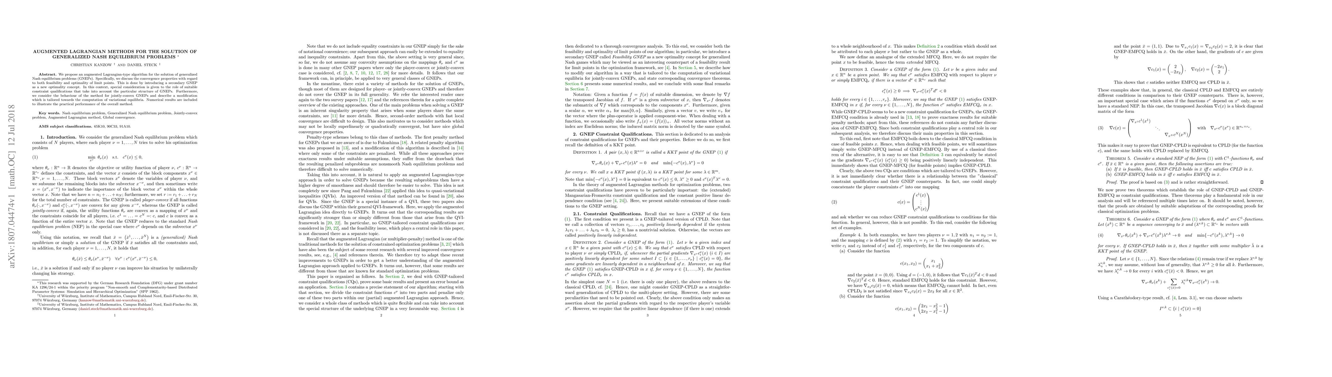 This paper proposes an augmented Lagrangian algorithm for solving generalized Nash equilibrium problems (GNEPs), analyzing convergence properties and introducing a secondary GNEP for optimality. The method is tailored for jointly-convex GNEPs and includes numerical results to demonstrate practical performance.