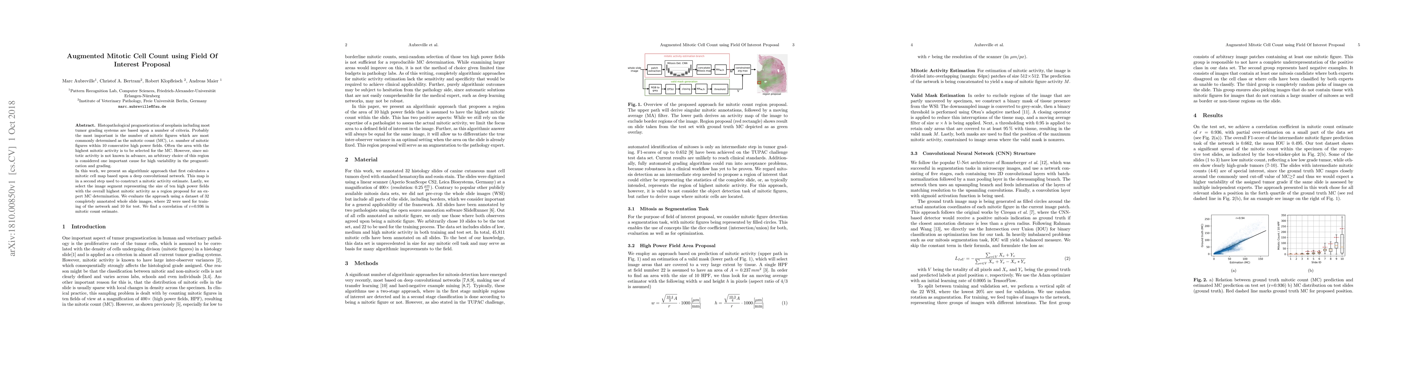 This paper proposes an algorithmic method using a deep convolutional network to create a mitotic cell map, which aids in selecting the region with the highest mitotic activity for expert mitotic count determination, reducing variability in tumor grading. The method shows a strong correlation (r=0.936) with actual mitotic counts in a test set of 10 whole slide images.