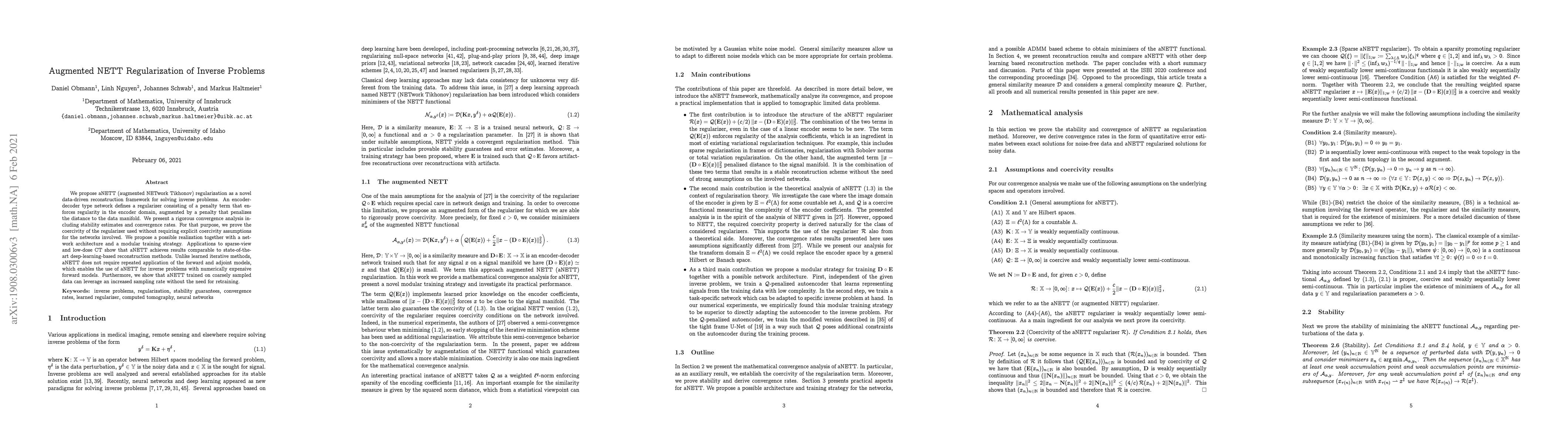 This paper introduces aNETT regularization, a novel data-driven framework for solving inverse problems using an encoder-decoder network. It demonstrates rigorous convergence analysis and applicability to sparse-view and low-dose CT, showcasing comparable results to state-of-the-art methods while avoiding the need for repeated forward model applications.