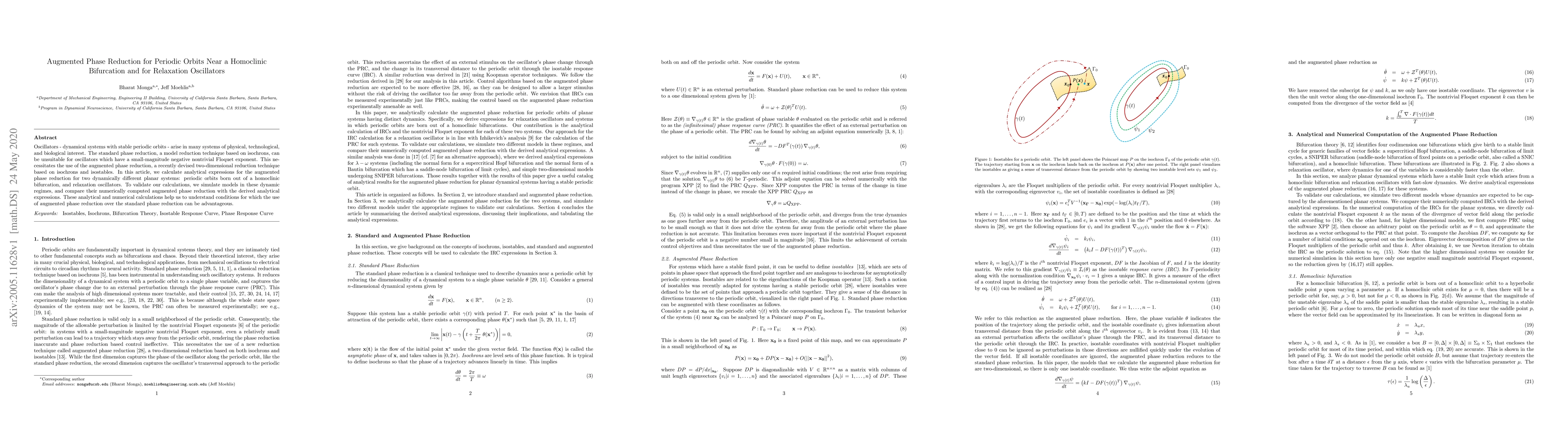 This paper develops analytical expressions for augmented phase reduction for systems with stable periodic orbits near a homoclinic bifurcation and for relaxation oscillators. It compares these expressions with numerical simulations to determine when augmented phase reduction is more advantageous than standard phase reduction.