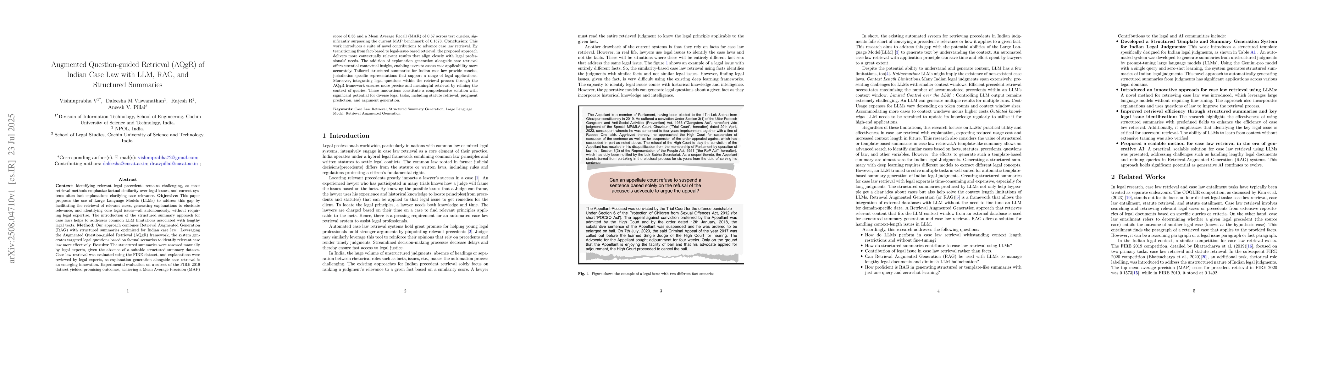Identifying relevant legal precedents remains challenging, as most retrieval methods emphasize factual similarity over legal issues, and current systems often lack explanations clarifying case relevance. This paper proposes the use of Large Language Models (LLMs) to address this gap by facilitating the retrieval of relevant cases, generating explanations to elucidate relevance, and identifying core legal issues all autonomously, without requiring legal expertise. Our approach combines Retrieval Augmented Generation (RAG) with structured summaries optimized for Indian case law. Leveraging the Augmented Question-guided Retrieval (AQgR) framework, the system generates targeted legal questions based on factual scenarios to identify relevant case law more effectively. The structured summaries were assessed manually by legal experts, given the absence of a suitable structured summary dataset. Case law retrieval was evaluated using the FIRE dataset, and explanations were reviewed by legal experts, as explanation generation alongside case retrieval is an emerging innovation. Experimental evaluation on a subset of the FIRE 2019 dataset yielded promising outcomes, achieving a Mean Average Precision (MAP) score of 0.36 and a Mean Average Recall (MAR) of 0.67 across test queries, significantly surpassing the current MAP benchmark of 0.1573. This work introduces a suite of novel contributions to advance case law retrieval. By transitioning from fact-based to legal-issue-based retrieval, the proposed approach delivers more contextually relevant results that align closely with legal professionals' needs. Integrating legal questions within the retrieval process through the AQgR framework ensures more precise and meaningful retrieval by refining the context of queries.