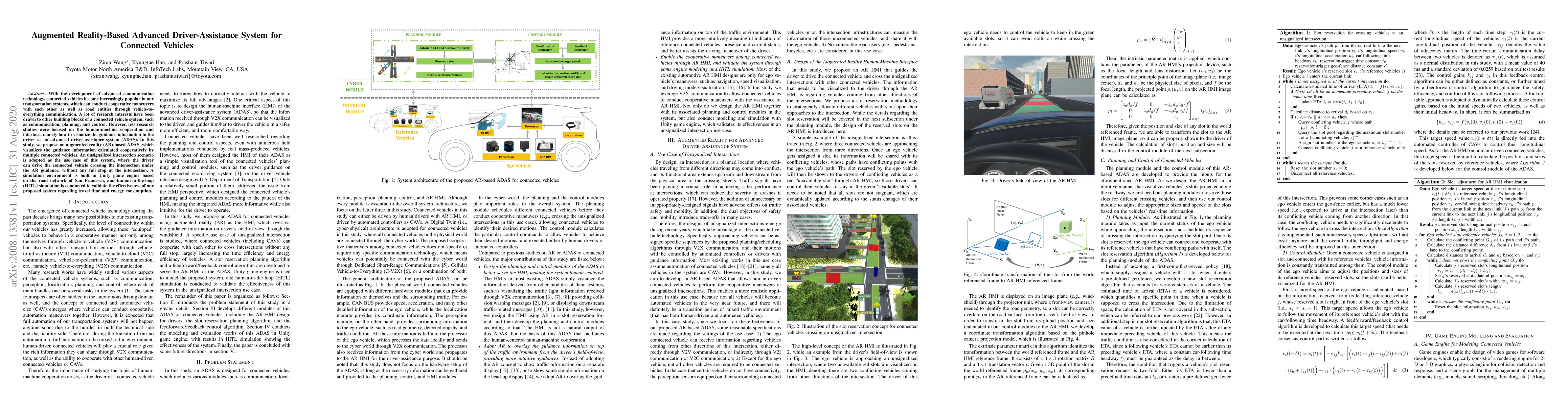 This paper proposes an augmented reality-based advanced driver-assistance system (ADAS) for connected vehicles, which visualizes cooperative guidance information to drivers at unsignalized intersections. The system's effectiveness is validated through a simulation in Unity, showing reduced travel time and energy consumption.