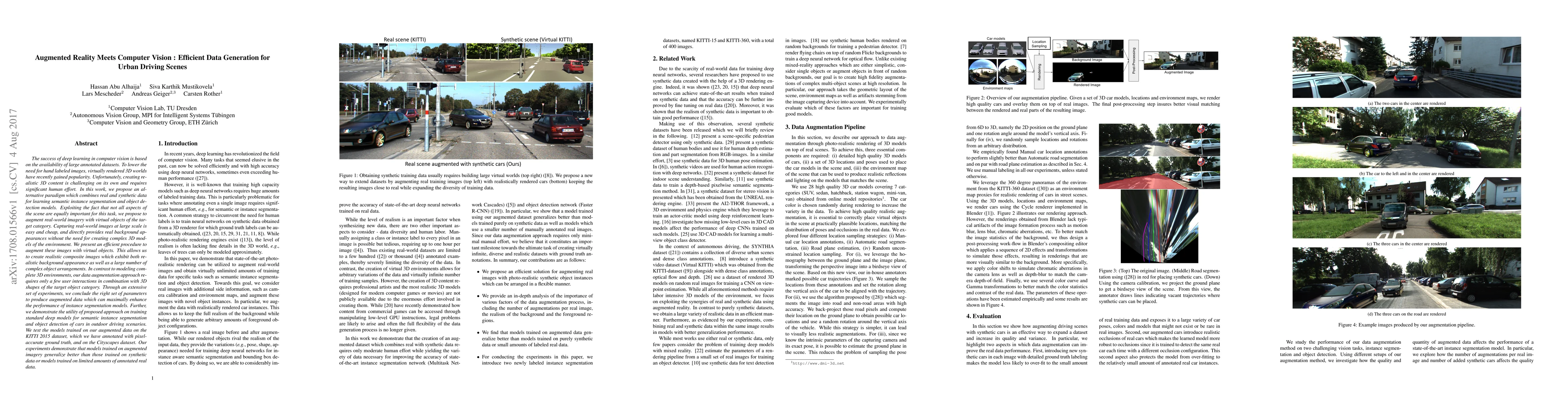 The success of deep learning in computer vision is based on availability of large annotated datasets. To lower the need for hand labeled images, virtually rendered 3D worlds have recently gained popularity. Creating realistic 3D content is challenging on its own and requires significant human effort. In this work, we propose an alternative paradigm which combines real and synthetic data for learning semantic instance segmentation and object detection models. Exploiting the fact that not all aspects of the scene are equally important for this task, we propose to augment real-world imagery with virtual objects of the target category. Capturing real-world images at large scale is easy and cheap, and directly provides real background appearances without the need for creating complex 3D models of the environment. We present an efficient procedure to augment real images with virtual objects. This allows us to create realistic composite images which exhibit both realistic background appearance and a large number of complex object arrangements. In contrast to modeling complete 3D environments, our augmentation approach requires only a few user interactions in combination with 3D shapes of the target object. Through extensive experimentation, we conclude the right set of parameters to produce augmented data which can maximally enhance the performance of instance segmentation models. Further, we demonstrate the utility of our approach on training standard deep models for semantic instance segmentation and object detection of cars in outdoor driving scenes. We test the models trained on our augmented data on the KITTI 2015 dataset, which we have annotated with pixel-accurate ground truth, and on Cityscapes dataset. Our experiments demonstrate that models trained on augmented imagery generalize better than those trained on synthetic data or models trained on limited amount of annotated real data.