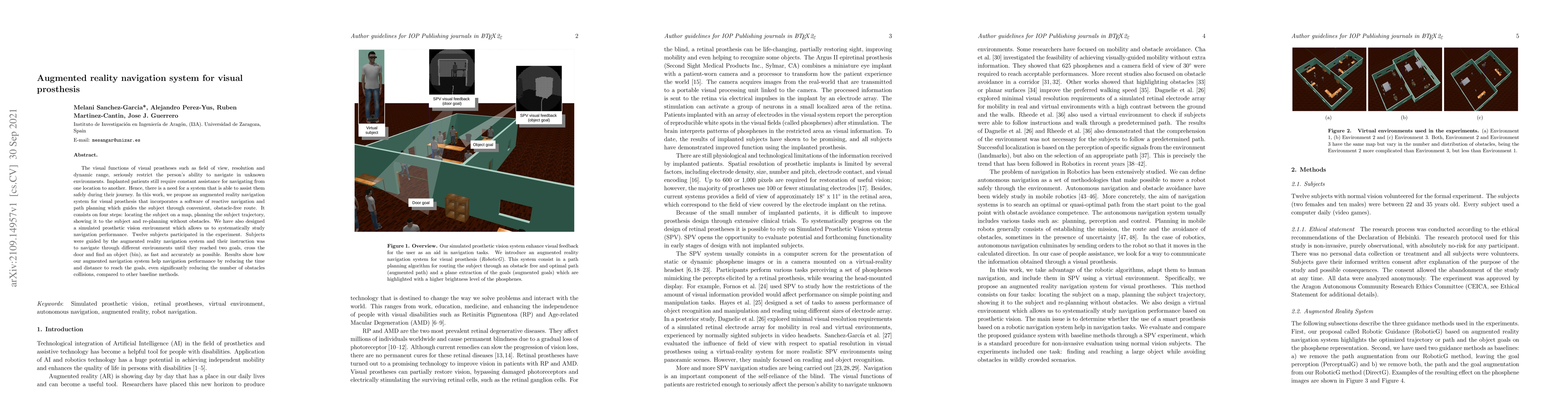 An augmented reality navigation system was developed to assist visually impaired individuals navigating unknown environments, improving completion times and reducing obstacle collisions.