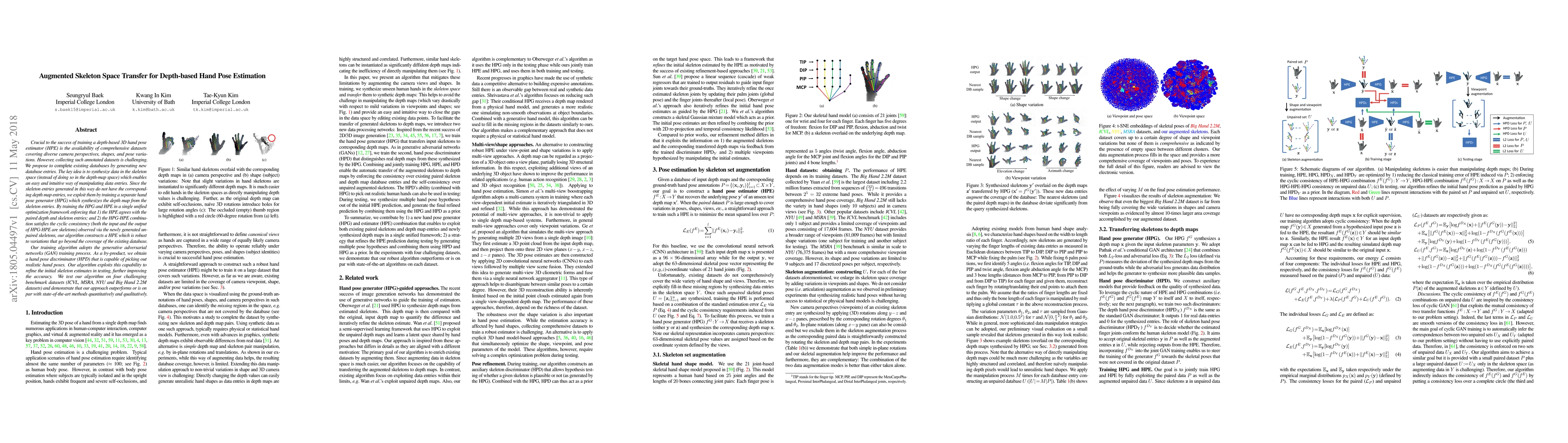 A new method uses augmented skeletons to improve depth-based hand pose estimation by generating new data entries and training a separate model that can synthesize depth maps from skeleton entries.