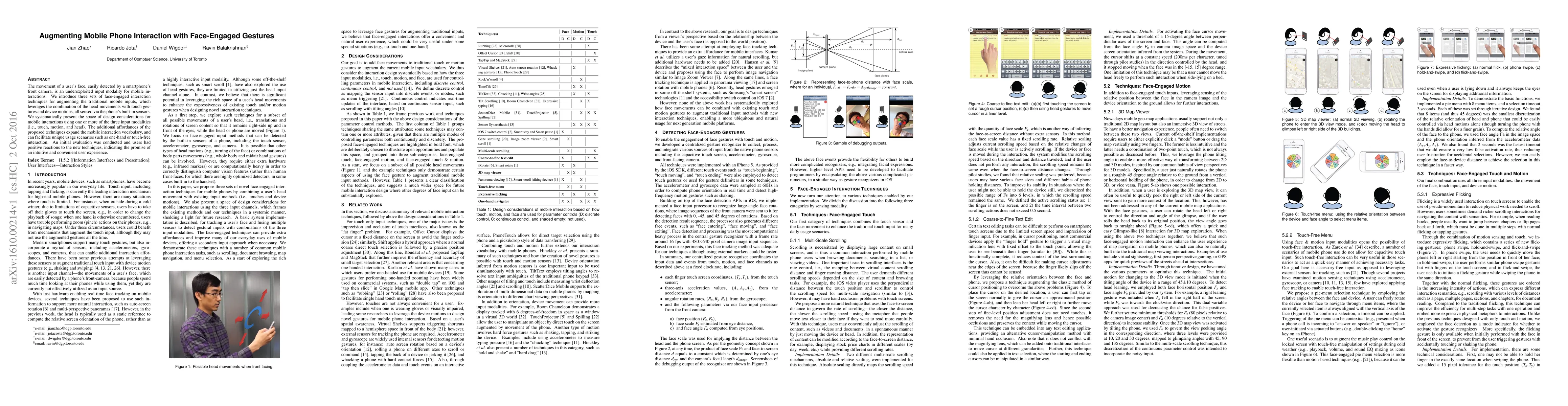 This paper explores face-engaged gestures detected via a smartphone's front camera to augment traditional mobile interactions, combining head movements with touch and device motions. Initial user feedback indicates promising potential for intuitive and convenient touch-free mobile usage.