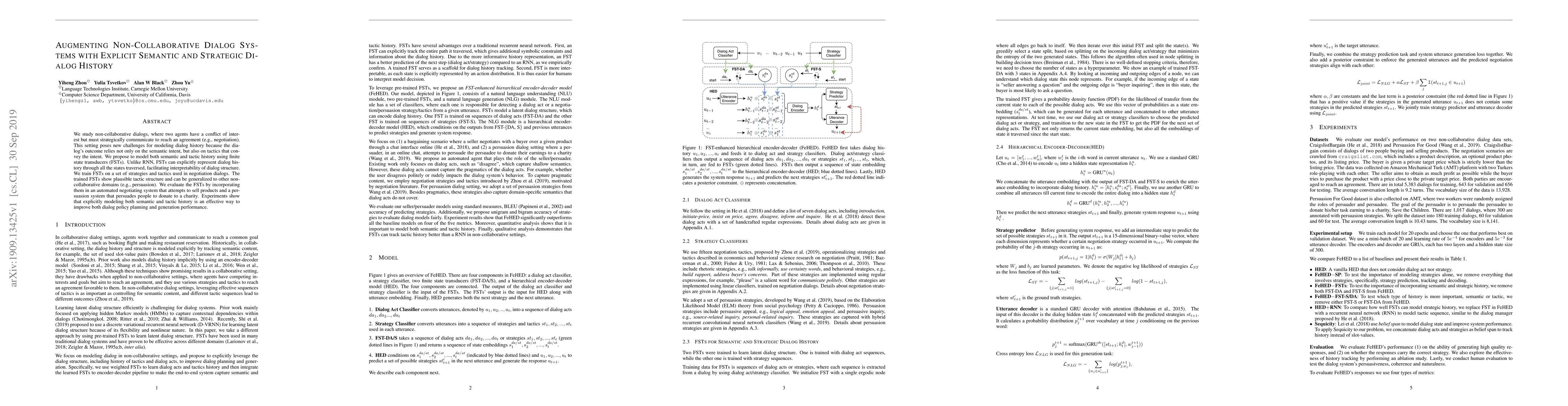 Researchers developed a new approach to modeling dialogue history in non-collaborative dialog systems, using finite state transducers to represent both semantic intent and strategic tactics, leading to improved performance in automated negotiating and persuading systems.