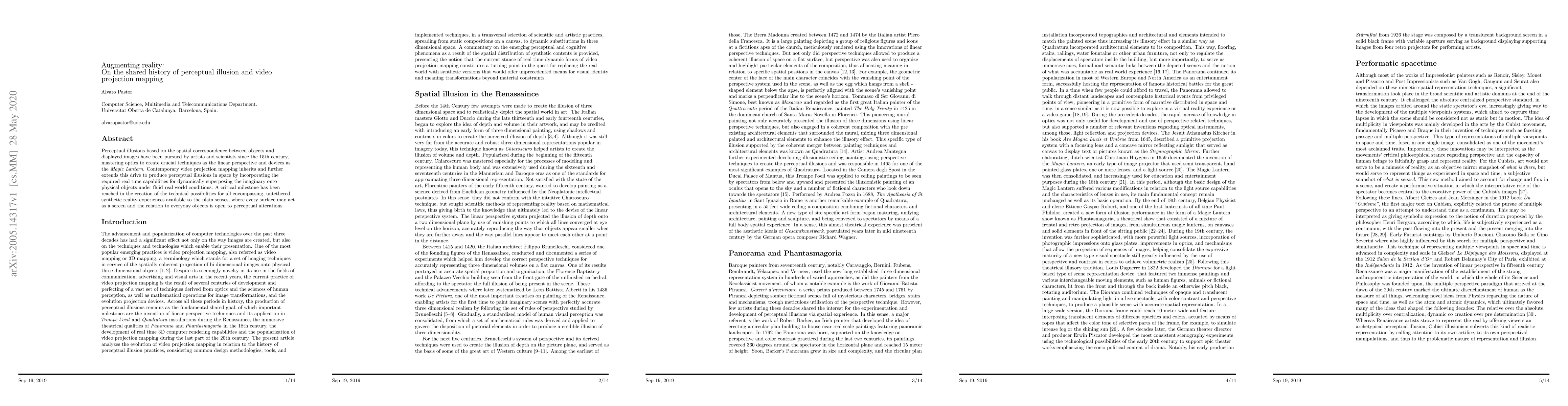Perceptual illusions based on the spatial correspondence between objects and displayed images have been pursued by artists and scientists since the 15th century, mastering optics to create crucial techniques as the linear perspective and devices as the Magic Lantern. Contemporary video projection mapping inherits and further extends this drive to produce perceptual illusions in space by incorporating the required real time capabilities for dynamically superposing the imaginary onto physical objects under fluid real world conditions. A critical milestone has been reached in the creation of the technical possibilities for all encompassing, untethered synthetic reality experiences available to the plain senses, where every surface may act as a screen and the relation to everyday objects is open to alterations.