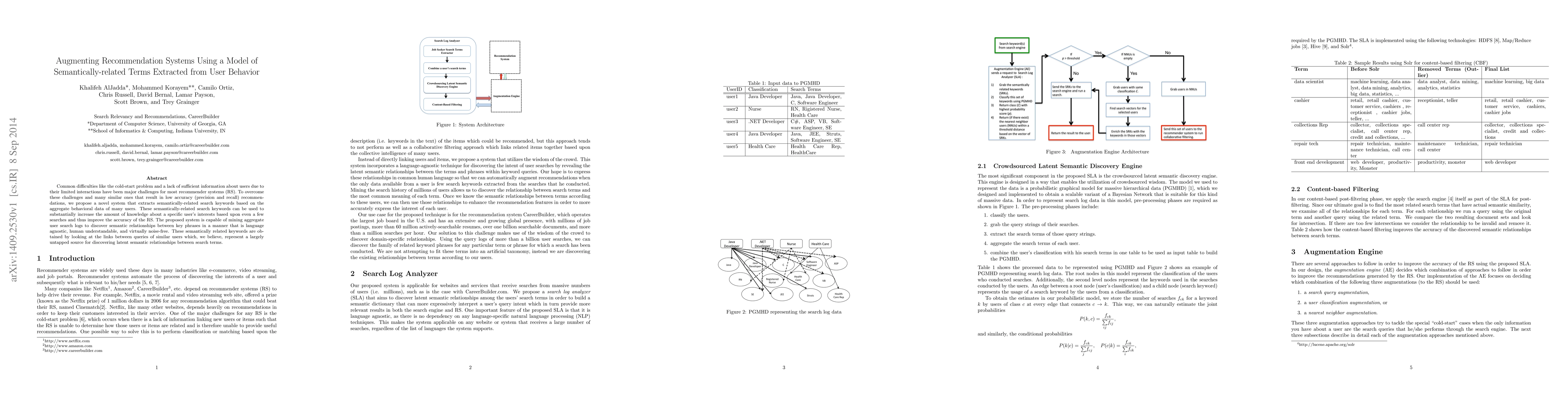 This paper proposes a novel recommendation system that tackles the cold-start problem and low accuracy by extracting semantically-related search keywords from aggregate user behavior data. The system mines user search logs to identify latent semantic relationships, enhancing the knowledge of user interests and improving recommendation accuracy.