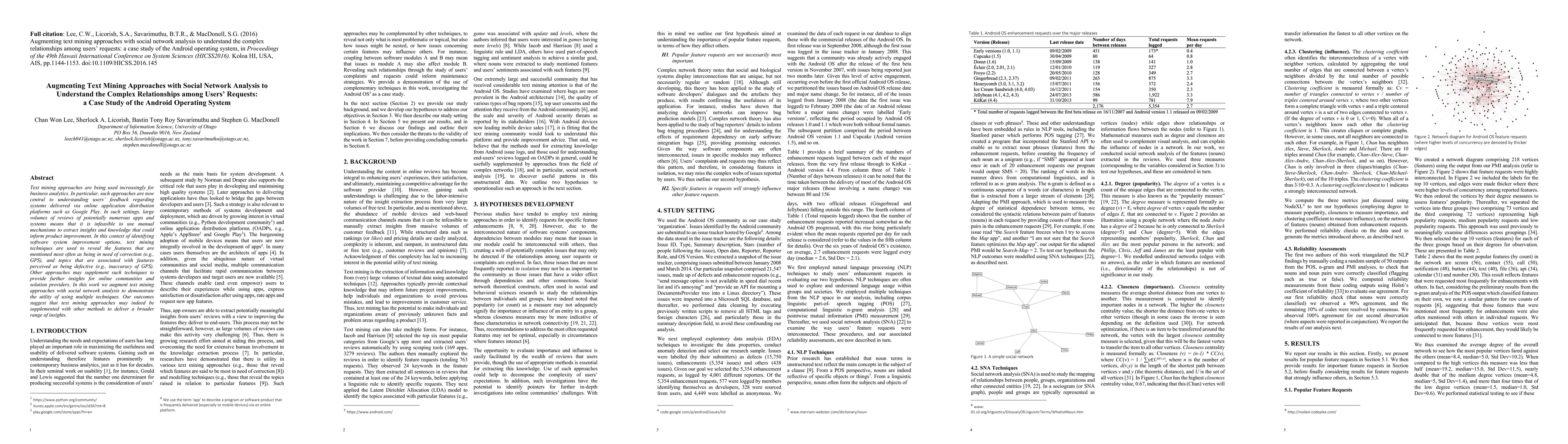 Text mining approaches are being used increasingly for business analytics. In particular, such approaches are now central to understanding users' feedback regarding systems delivered via online application distribution platforms such as Google Play. In such settings, large volumes of reviews of potentially numerous apps and systems means that it is infeasible to use manual mechanisms to extract insights and knowledge that could inform product improvement. In this context of identifying software system improvement options, text mining techniques are used to reveal the features that are mentioned most often as being in need of correction (e.g., GPS), and topics that are associated with features perceived as being defective (e.g., inaccuracy of GPS). Other approaches may supplement such techniques to provide further insights for online communities and solution providers. In this work we augment text mining approaches with social network analysis to demonstrate the utility of using multiple techniques. Our outcomes suggest that text mining approaches may indeed be supplemented with other methods to deliver a broader range of insights.