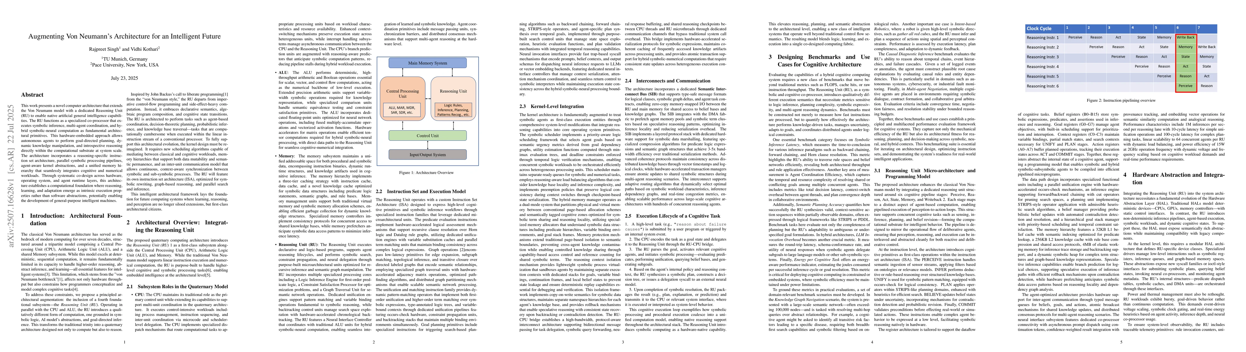 This work presents a novel computer architecture that extends the Von Neumann model with a dedicated Reasoning Unit (RU) to enable native artificial general intelligence capabilities. The RU functions as a specialized co-processor that executes symbolic inference, multi-agent coordination, and hybrid symbolic-neural computation as fundamental architectural primitives. This hardware-embedded approach allows autonomous agents to perform goal-directed planning, dynamic knowledge manipulation, and introspective reasoning directly within the computational substrate at system scale. The architecture incorporates a reasoning-specific instruction set architecture, parallel symbolic processing pipelines, agent-aware kernel abstractions, and a unified memory hierarchy that seamlessly integrates cognitive and numerical workloads. Through systematic co-design across hardware, operating system, and agent runtime layers, this architecture establishes a computational foundation where reasoning, learning, and adaptation emerge as intrinsic execution properties rather than software abstractions, potentially enabling the development of general-purpose intelligent machines.