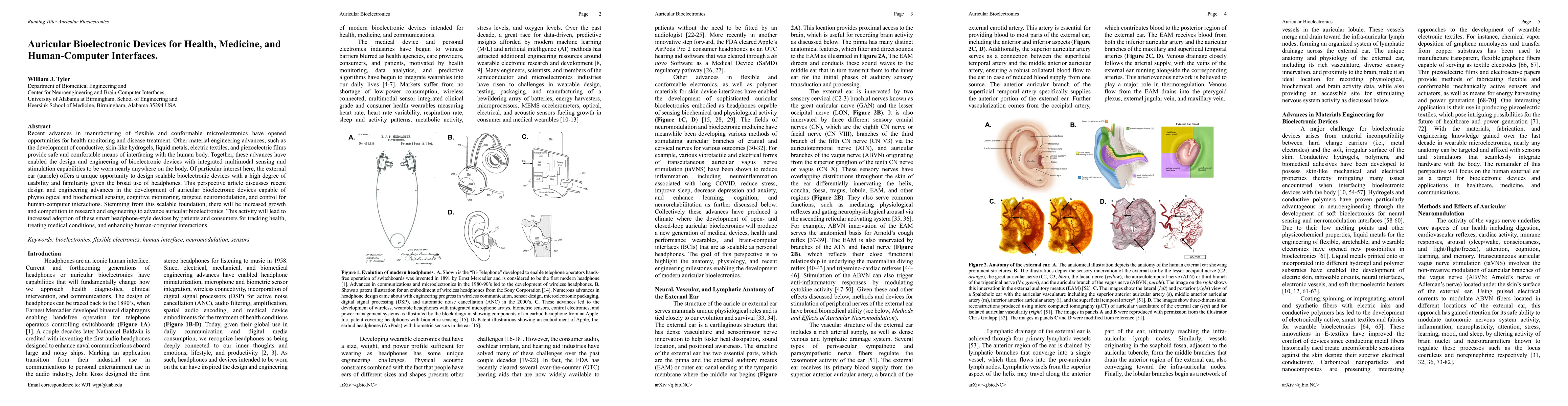 This paper discusses recent technological advances in flexible microelectronics and material engineering that facilitate the creation of bioelectronic devices for health monitoring, treatment, and human-computer interfaces, focusing on the ear as a highly usable and familiar location for such devices. These innovations are poised to drive the adoption of smart, headphone-style devices for health tracking, medical treatment, and enhanced interaction with digital systems.