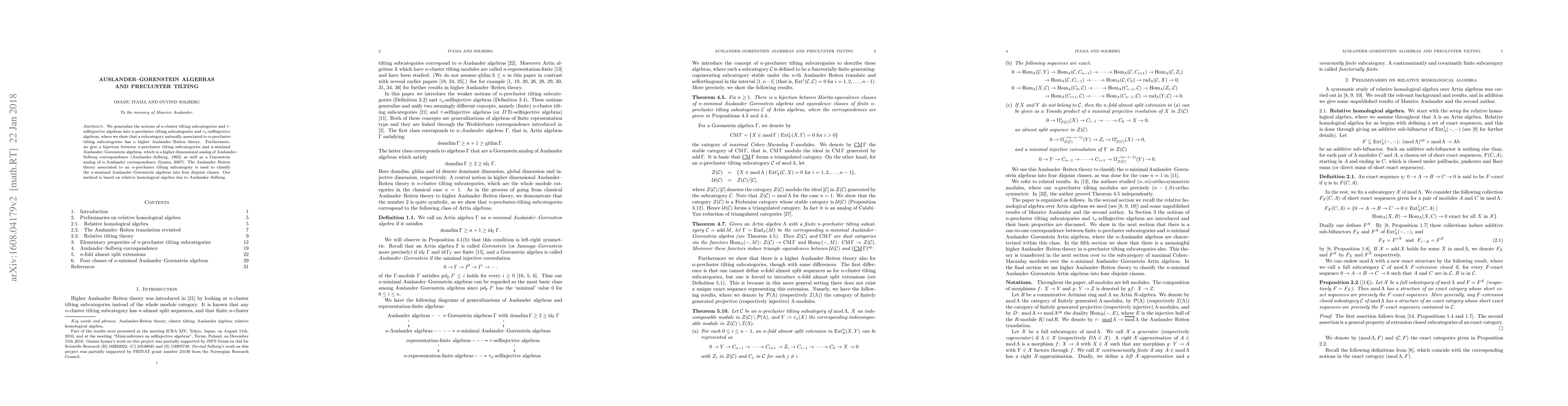This paper generalizes $n$-cluster tilting subcategories and $\tau$-selfinjective algebras to $n$-precluster tilting subcategories and $\tau_n$-selfinjective algebras, establishing a bijection between the two. It also classifies $n$-minimal Auslander--Gorenstein algebras into four classes using the associated Auslander--Reiten theory.