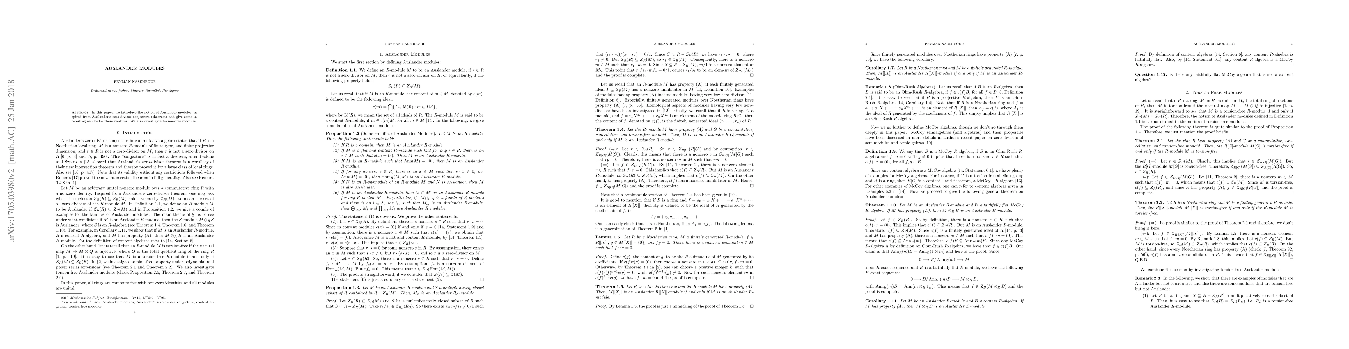 The paper introduces Auslander modules, inspired by Auslander's zero-divisor conjecture, and investigates their properties, particularly in relation to torsion-free modules over Noetherian rings.