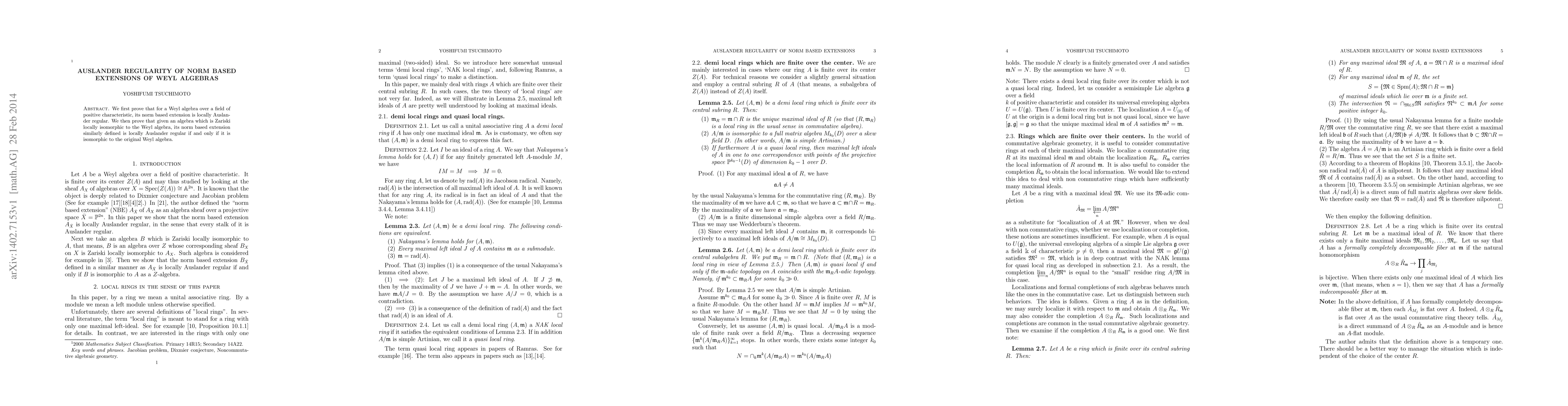 We first prove that for a Weyl algebra over a field of positive characteristic, its norm based extension is locally Auslander regular. We then prove that given an algebra which is Zariski locally isomorphic to the Weyl algebra, its norm based extension similarly defined is locally Auslander regular if and only if it is isomorphic to the original Weyl algebra.