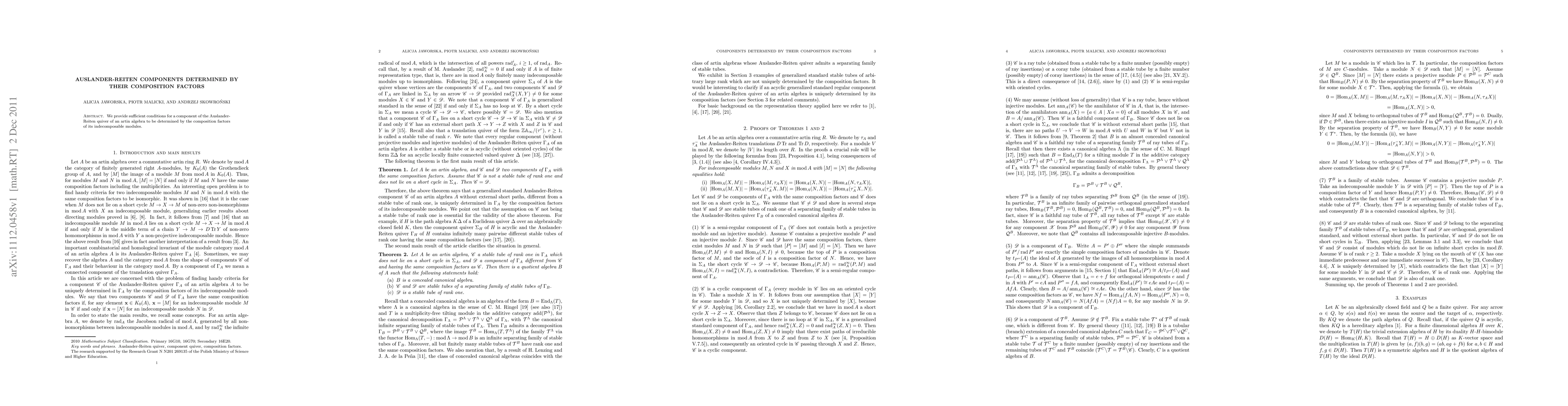 We provide sufficient conditions for a component of the Auslander-Reiten quiver of an artin algebra to be determined by the composition factors of its indecomposable modules.