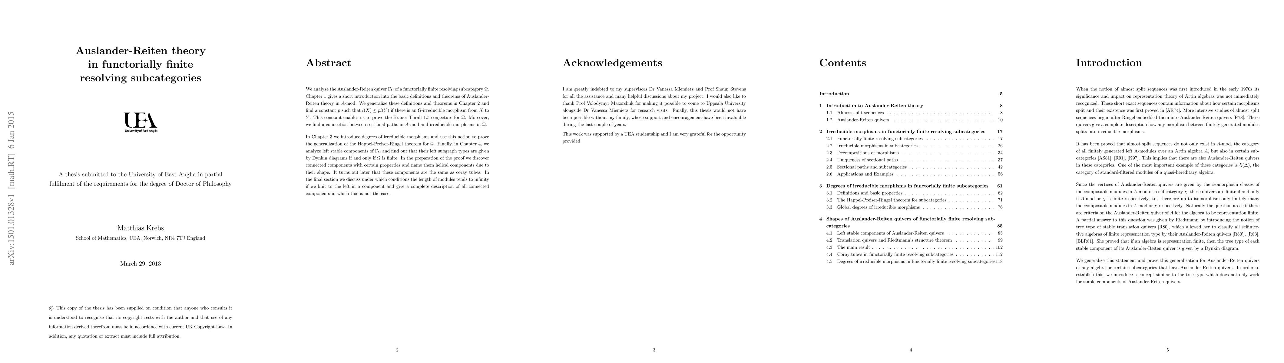 This paper generalizes Auslander-Reiten theory to functorially finite resolving subcategories, proving Brauer-Thrall conjectures and analyzing sectional paths and degrees of irreducible morphisms. It also examines left stable components, identifying helical components and conditions under which module lengths do not tend to infinity.